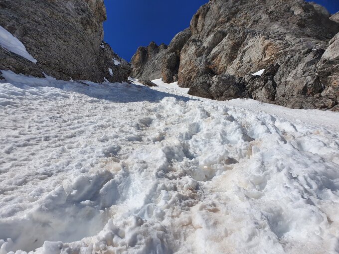 Als Abfahrt habe ich die Variante via Puchergand - Tritt - Bristen gewählt. Bis P1898 waren die Südhänge toll aufgesulzt und war demenstsprechend ein Traum zum abfahren. Danach mit viel Stossen bis Tritt und mit wenig bis gar keinem Schnee bis Bristen weiterge-fahren-laufen.