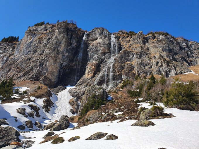 Ich empfehle diese Abfahrtsvariante für den Skiabfahrtsgenuss nicht mehr. Landschaftlich aber top! Trotzdem lieber die Abfahrt auf der Aufstiegsroute wählen und im Wald etwas laufen.