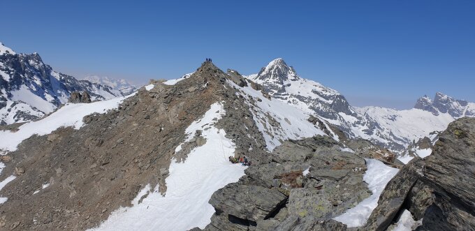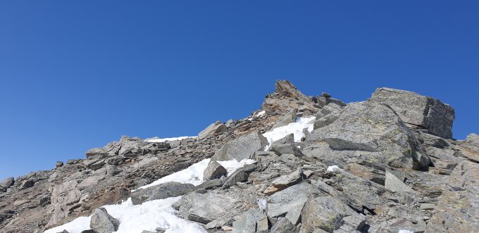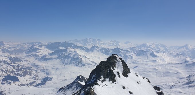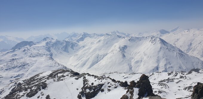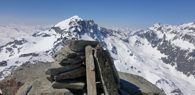 Start der Tour am 8.00 Uhr in Bivo, eine Stunde früher währe besser gewesen, ein kurzes Stück entlag der Skipiste, bei Val Beiva wurde es schon recht warm, der Aufstieg heute war gut griffig, die Harscheisen brauchte ich heute nicht, die steilen Hänge waren ziemlich ruppig , viel Schnee hat es im Gebiet auch nicht, zuerst gingen wir noch zum Nebengipfel der schwieriger zum besteigen war, Abfahrt am 12 Uhr war leider eine Stunde zu spät.