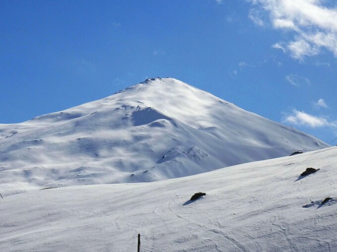 Wetter nach etwas Sonne beim Start bis Mittag wolkenverhangen und leichter Schneefall. Dann Auflockerungen, am Gipfel schon recht gute Sicht und bei der Abfahrt nachmittags weitgehend sonnig.
