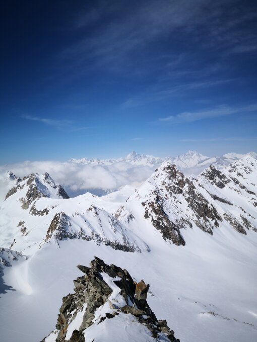 Start um 06.30 bei noch bedecktem Himmel. Zuerst ca. 30min Ski tragen bis zur Brücke. Ab dort noch 2-3x Ski abziehen. Ab ca. Hinterschweig dann durchgehend Schnee. Ca. 100hm unterhalb der Rotondohütte riss die Nebeldecke auf und es wurde schlartig wärmer. In knapp 3h zum Skidepot. Von dort zu Fuss auf den Gipfel. Steigeisen hilfreich aber nicht zwingend. Abfahrt bis Ebene unterhalb Rotondohütte es Träumli. Rest dann einfach laufen lassen.