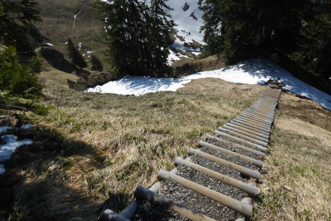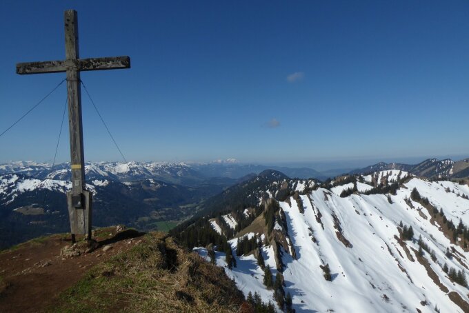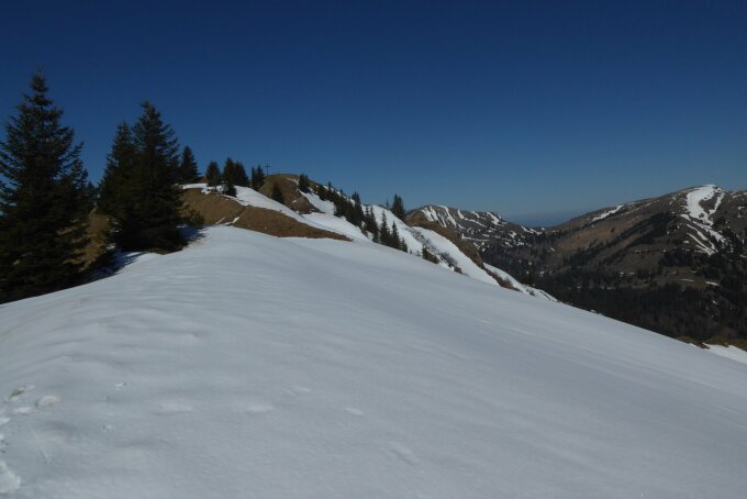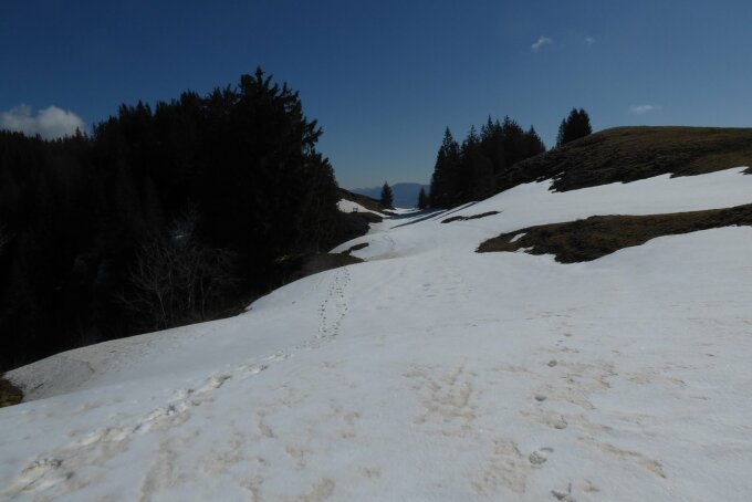 Mautstrasse frei bis Stubenbach-u.Rappengschwendalpe. Weiter zur Unt.Wilhelminealp im Wechsel aper bzw. noch grösseren Altschneezonen. Ab U.Wilhelmine rechts auf Viehtrieb zunächst aper, oben aber noch durchgehend tragender Altschnee, bis in Scharte oberhalb der Ob.Wilhelminealp. Steig zum Siplinger noch 2 steile Felder bis zur Leiter. Oben noch fast durchgehend fester Altschnee bis zum Gipfel. Schon etwas anspruchsvoller als bei sommerlichen Verhältnissen. Wetter prächtig am Morgen etwas kühl. Mautstrasse wird vermutlich nicht zum 1. Mai geöffnet.