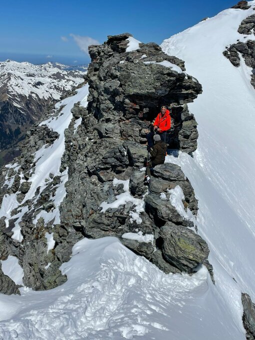 Immer noch eine schöne Tour - Schnee ab Furt, am Gipfelhang sogar neuer Pulver, der Gipfel selbst direkt über den Vorgipfel gut erreichbar. In der Abfahrt von der Wildseeluggen bis Furt schöner Sulz.