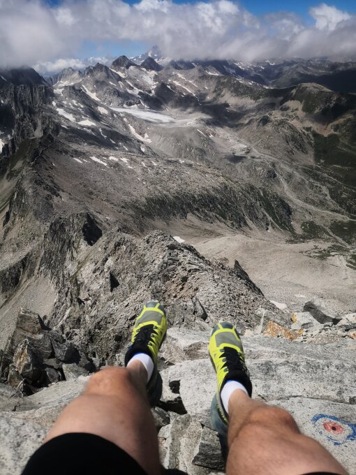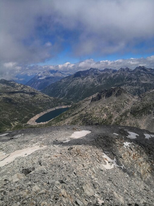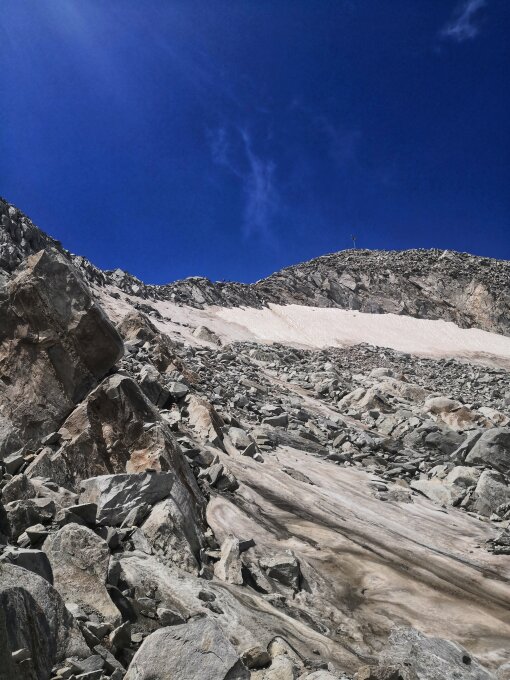 Gipfelgletscherchen nur noch ein Schatten seiner selbst. Kann gut umgangen werden.