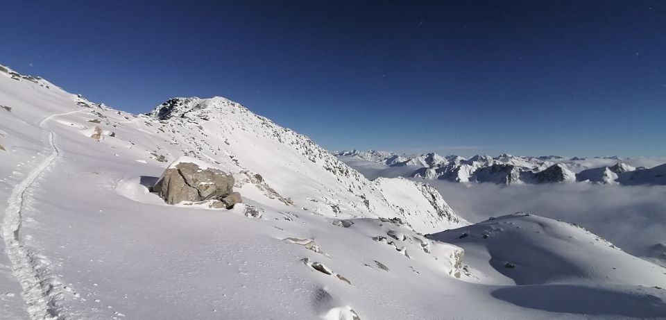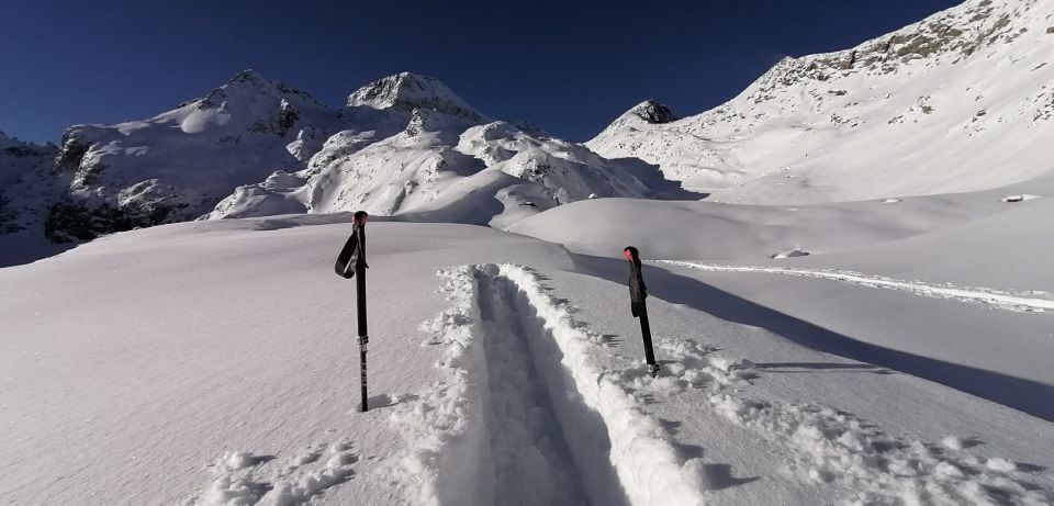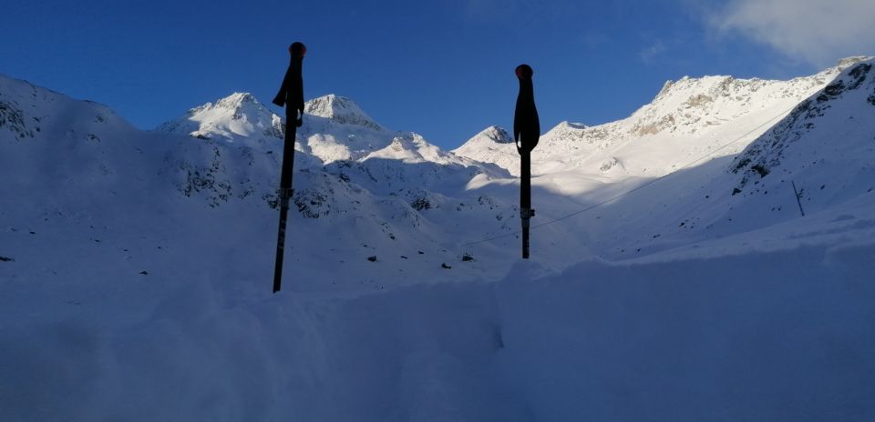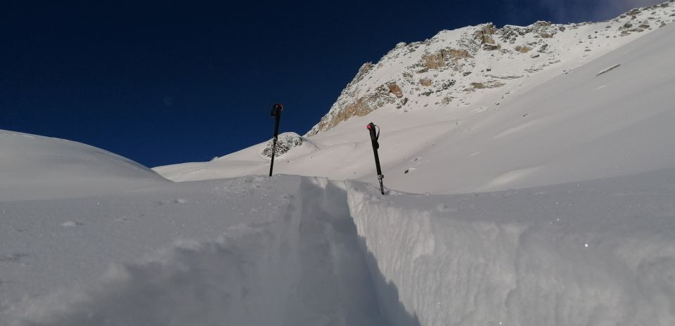 Gewalzte Strasse bis zur Brücke Ebnen . Das Witenwasserental ist bis Oberstafel vom Wind bearbeitet und bis zum Läckipass liegt in den Mulden tiefer Pulverschnee. An Graten wenig bis kein Schnee... Steinkontakte sind gut möglich