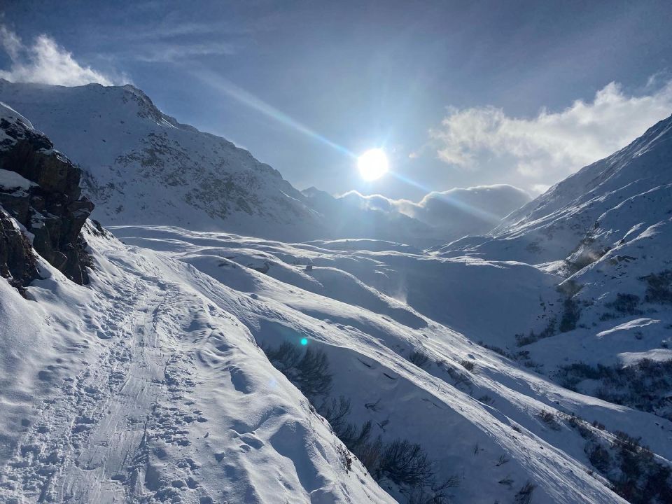 Vom Banhof aus muss man etwa 10 min zu Fuss gehen bevor Mann die Skier anziehen kann. Der Sommerweg zur Rotondo Hütte ist trotz knapper Schneeverhältnisse gut machbar. Richtung Lucendro hoch liegt zwar viel Schnee in den Rinnen und Mulden, jedoch muss mit dem einen oder anderen Steinkontakt gerechnet werden da der Wind sehr viel Schnee verfrachtet hat. Die Nordwand konnte ich leider nur von einer grösseren Entfernung sehen aber sie sah gut eingeschneit aus. Aufgrund extrem schlechter Sicht hab ich mich entschieden in der Lücke umzudrehen.