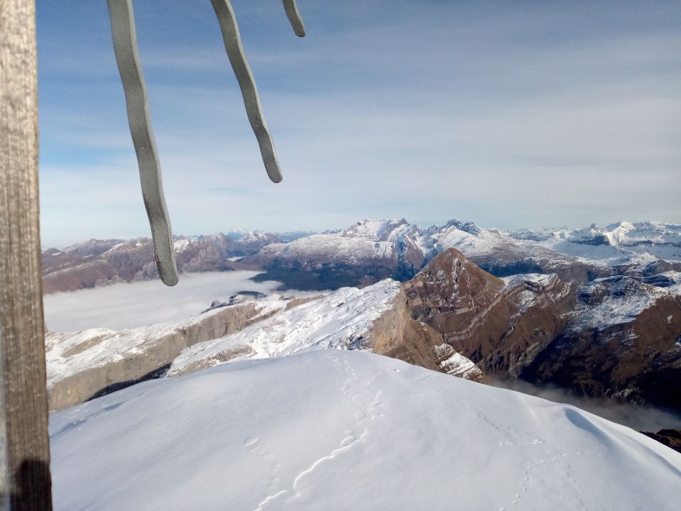 Aufstieg bis zum Chaisertor so ziemlich schneefrei. Nordseitig ziemlich unangenehmer Schnee und noch keine Spuren. Mussten an der ersten Stelle zuerst das Drahtseil ausgraben. Mithilfe des Seils trotzdem machbar. Abstieg mithilfe einer Bandschlinge problemlos.