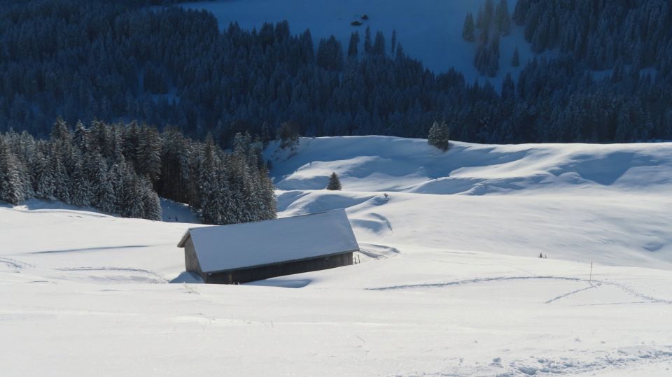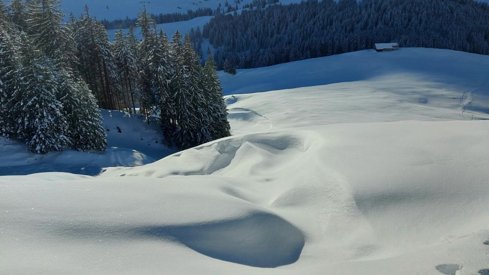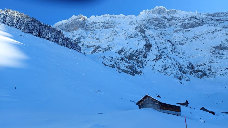 Die Schneelage war viel besser als erwartet. In den letzten Tagen sind ca. 25-30 cm Neuschnee hinzugekommen. Es liegt wohl mehr als ein halber Meter Schnee, meist auf einer Unterlage. Auch der Südhang oberhalb vom Langälpli war heute gut eingeschneit.