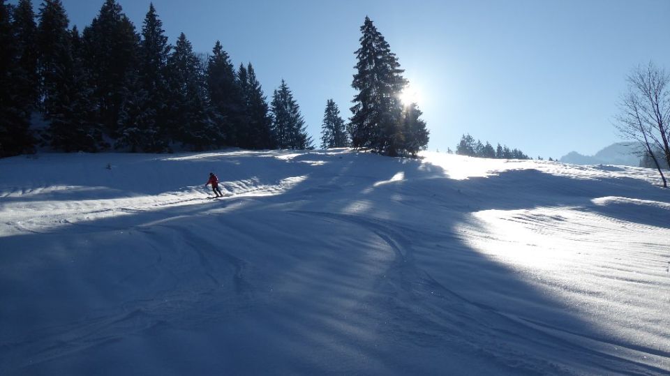 Kurzum ein Wintertag wie es "früher einmal war": Dunkelgrün, besser geht es nicht. Natürlich alles bestens eingespurt u. eingefahren. Aber geniale durchgefrorene Auflage bis runter.