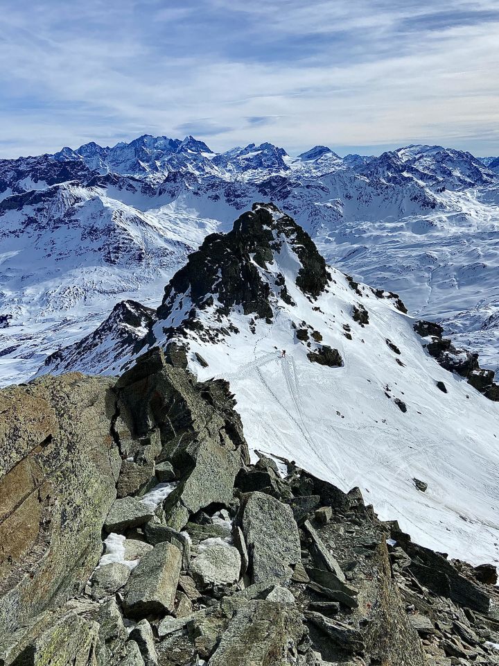 Kontakt mit Fels und Gras unvermeidlich. Die Schneebedingungen werden leider mit jedem Tag schlechter.