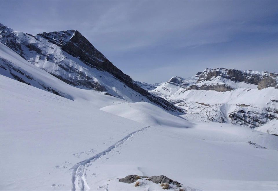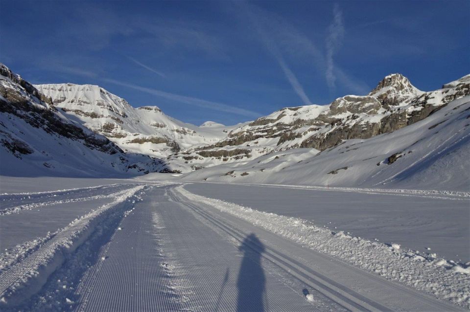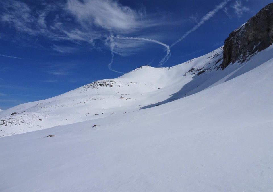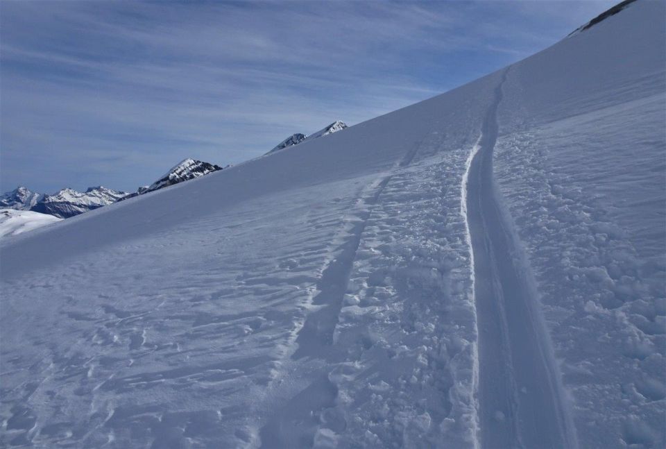 am Donnerstagmorgen, 16. März auf der normalen Route via Spittelmatte-Sagiwald-Tatele zum Undre Tatelishore. Seit langem wieder einmal unverspurt mit 20-30cm auf harter Unterlage. Abfahrt bis Sagiwald mit Pulver. Danach unangenehmer Bremsschnee bis auf Spittelmatte. Nach dem Mittag war es im Zustieg zur Gemmi sehr warm.