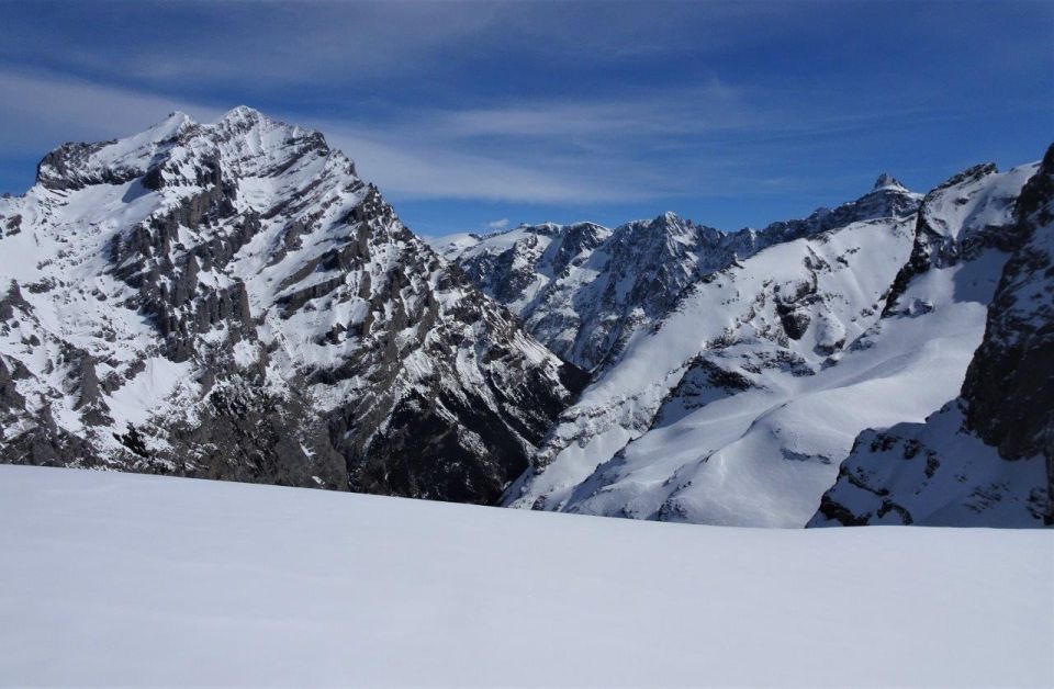 am Freitagmorgen, 17.3. nach kalter Nacht angenehmer Gipfelzustieg in gut angelegter Spur bis zum Skidepot. So viele Türeler wie heute habe ich auf dem Gipfel und beim Skidepot noch nie angetroffen. Sehr schöne Pulverabfahrt, 30-50cm, bis auf den Lämmerenboden. Danach zurück via Daubensee -Schwarenbach - Spittelmatte bei sehr milden Temperaturen.