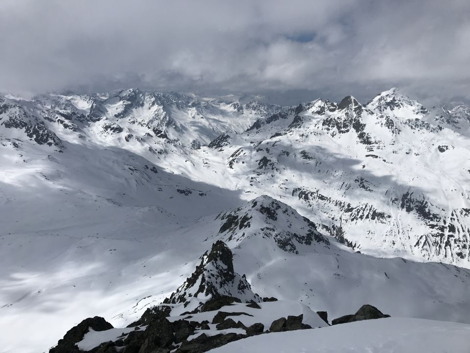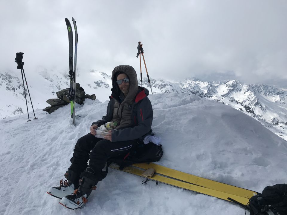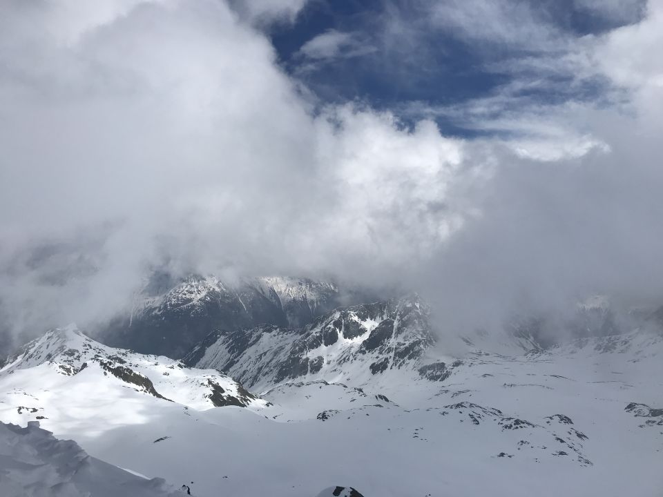 Für uns ist die Sonne am Gipfel rausgekommen. Wolkenfetzen ziehen um den Gipfel. Super Stimmung!