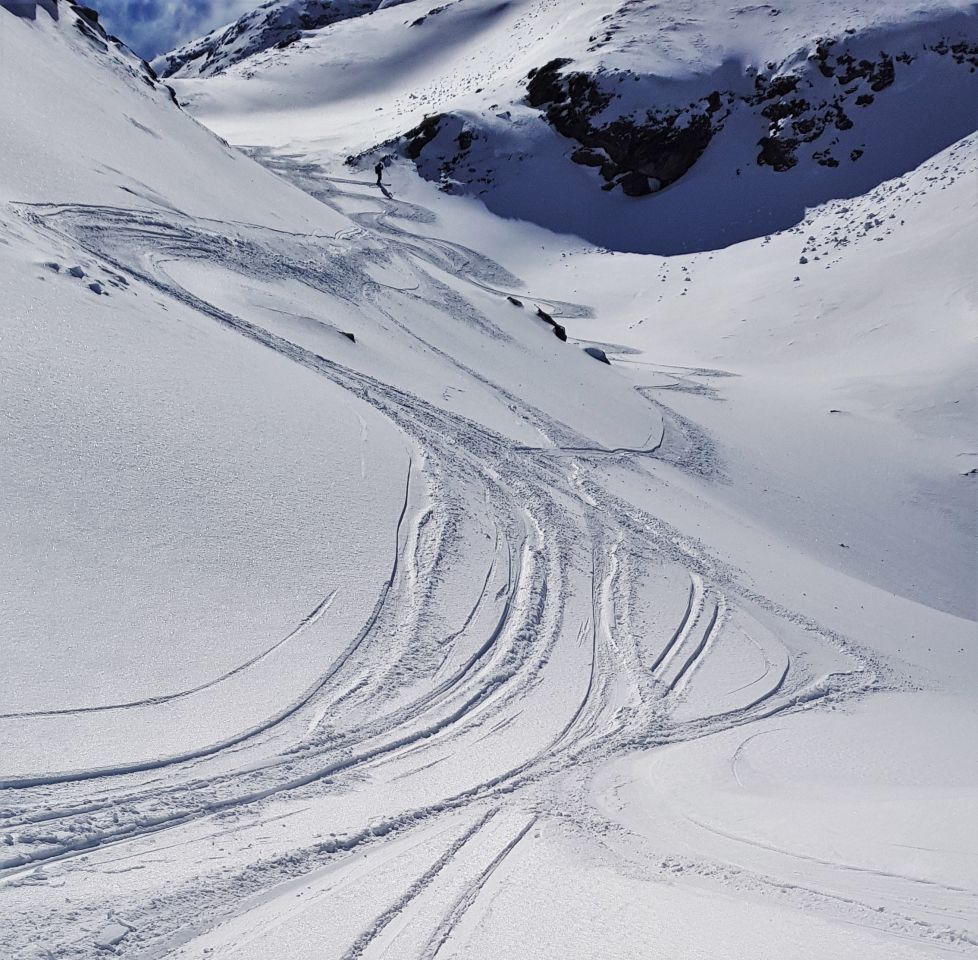 Erstaunlicherweise absolut ausreichend Schnee. Auch Coluonnas und Surgonda (mit leichten Einschränkungen) wohl noch gut machbar