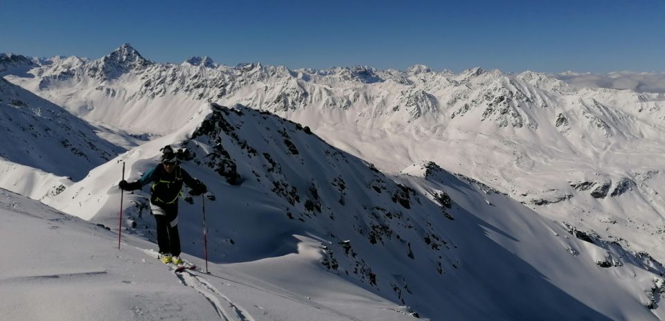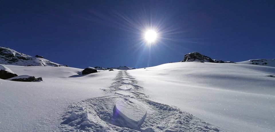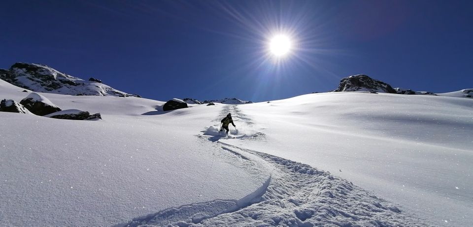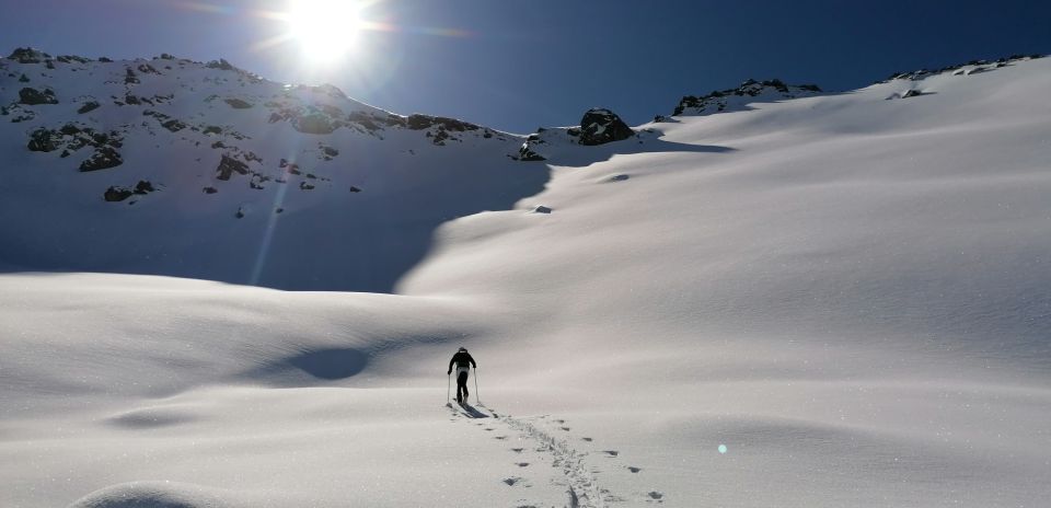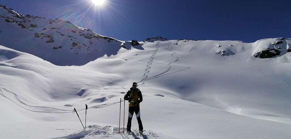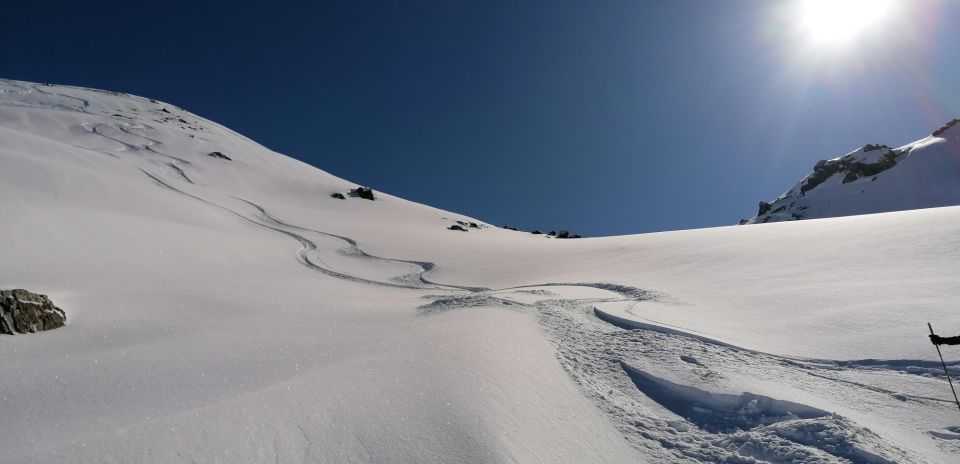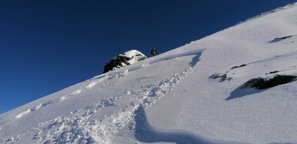 Pulverschnee auf der ganzen Runde. Am Gipfel sind Steigeisen von von Vorteil