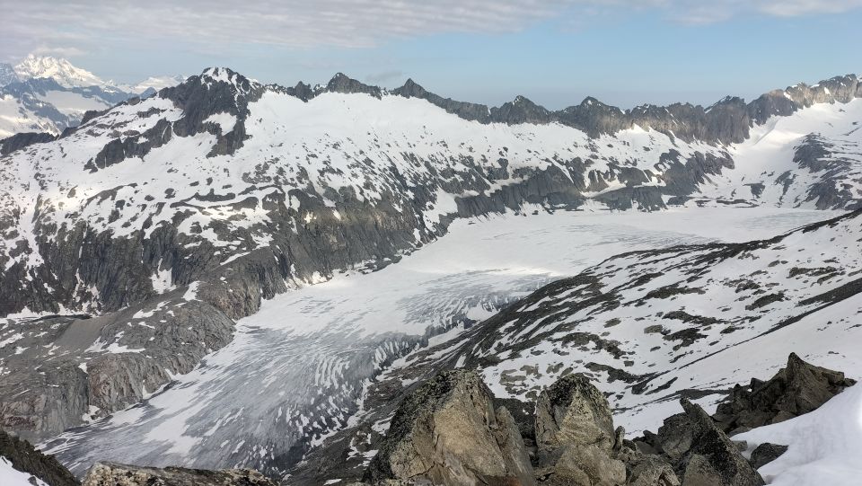 Start der Tour am 6.10 Uhr, bei einer Temperatur von + 5 Grad, das Wetter heute teils sonnig, nach wenigen Minuten konnten die Ski montiert werden, immer noch eine durchgehende Schneedecke bis zum Gipfel, mit wenig Regenrillen, dann noch zweiter Aufstieg zum Chli Bielenhorn , auch da waren die Verhältnisse gut, steiler Aufstieg zur Unteren Bielenlücke , bei immer noch harten Schnee, von hier in wenigen Minuten zum Gipfel vom Chli Bielenhorn, mit tollen Blicken zu den Kamelen, nach kurzem halt bei der Sidelenhütte ging es zurück zur Furkastrasse.