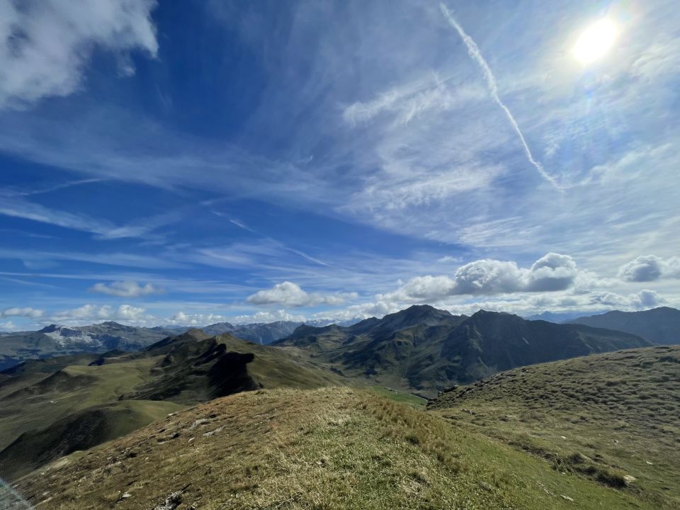 Sonne, leichte Bise, Cumulus Wolken am Horizont, etwas Cirrus und Chemtrails ;) über uns.
