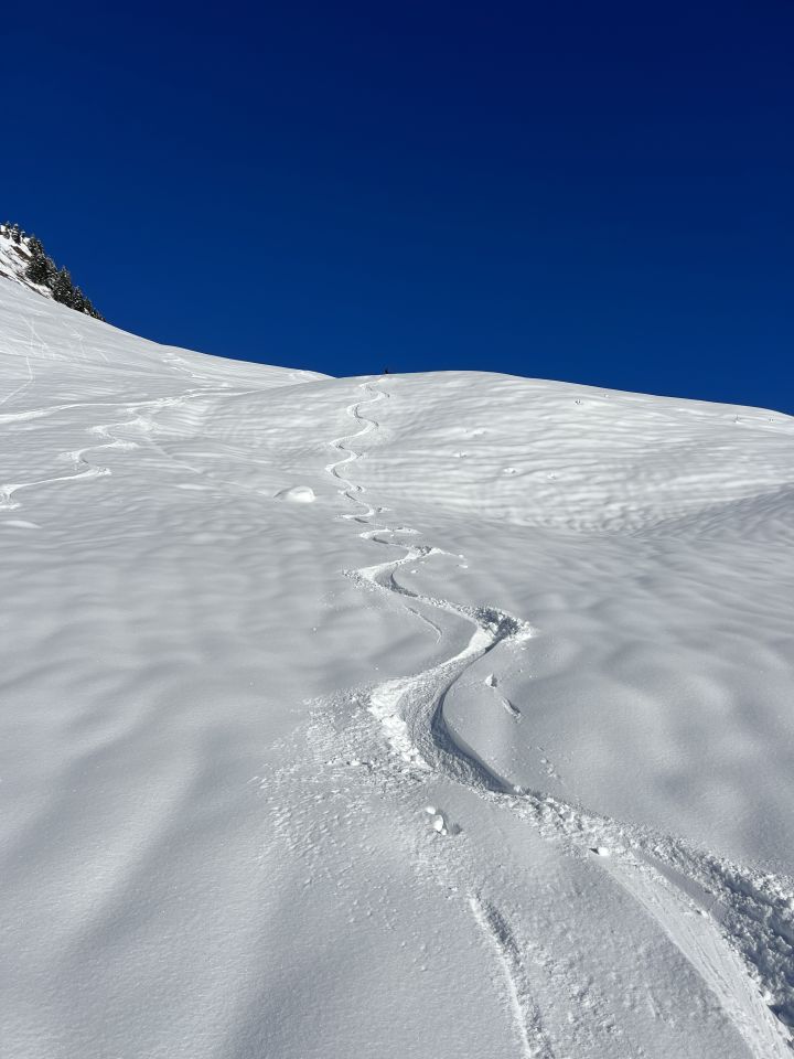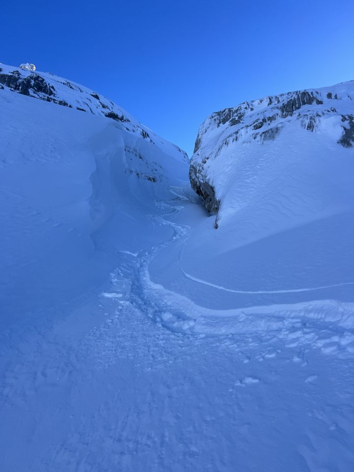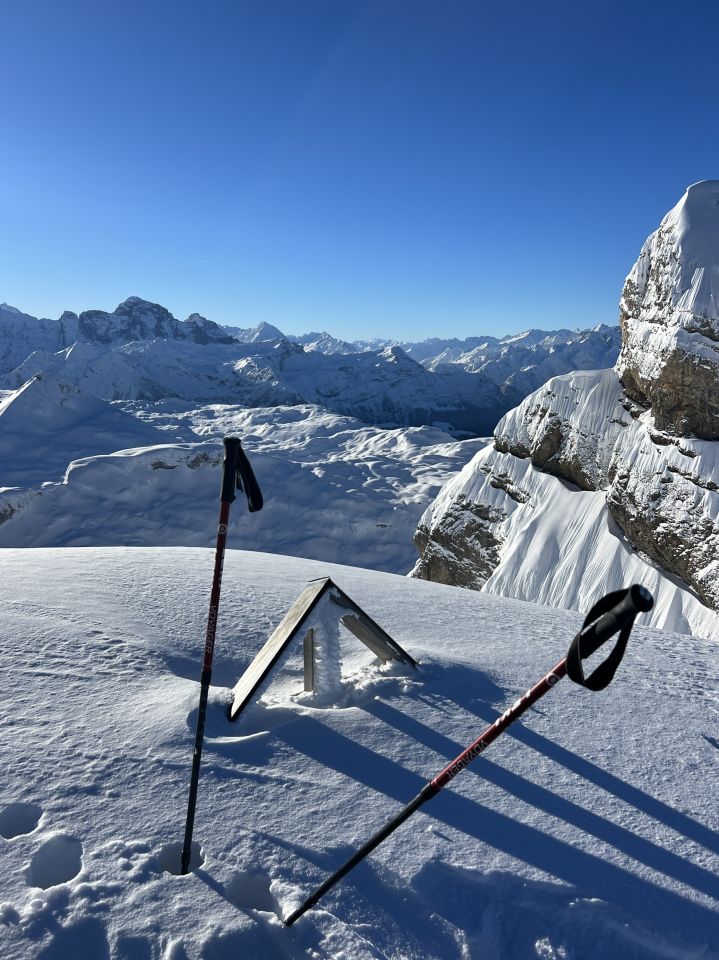 Beim Gipfel ist die „Blüemberglawine“ vermutlich tags zuvor abgegangen und hat einen grossen Teil des Gipfelhanges ein wenig in Mitleidenschaft gezogen.