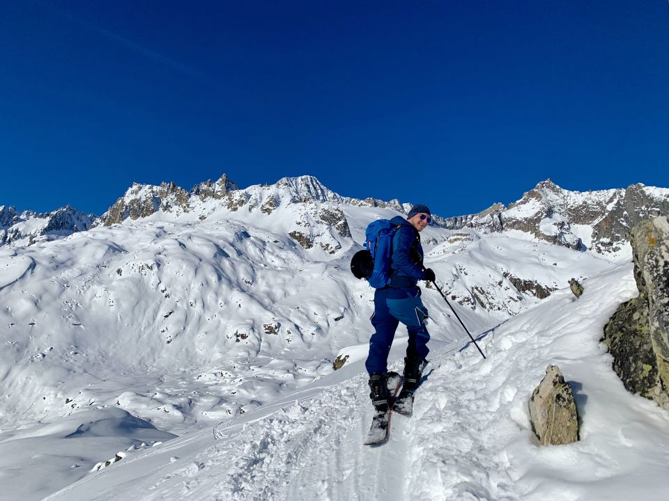 Für diese Jahreszeit waren die Temperaturen etwas zu warm. Daher der Schnee schon bald ziemlich schwer, vor allem auch bei der Abfahrt. In ein paar Nord/Schattenhängen jedoch teilweise schöner Pulverschnee. Spuranlage sehr gut. Heikel und etwas mühsam ist die Querung nach dem Tiefenbach-Restaurant der Passstrasse entlang, weilt dort schon einige Hänge runter gekommen sind und die Strasse voll von Lawinenkegeln sind. Trotzdem eine wunderschöne Tour mit eindrücklichem Ambiente der umliegenden Berge der Furka-Kette. Zusätzlich belohnt der Weitblick vom Bündnerland bis in die Walliseralpen.