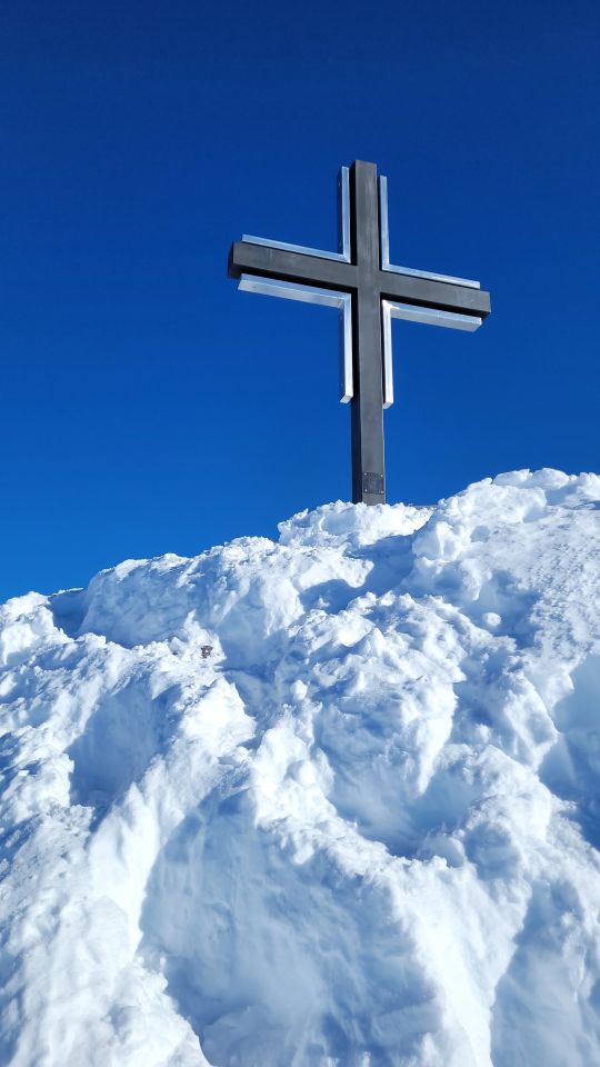 Gute Spur, genug Schnee, ab Skidepot problemlos auf den Gipfel, Pickel kann hilfreich sein, Ketten nur teileise frei.