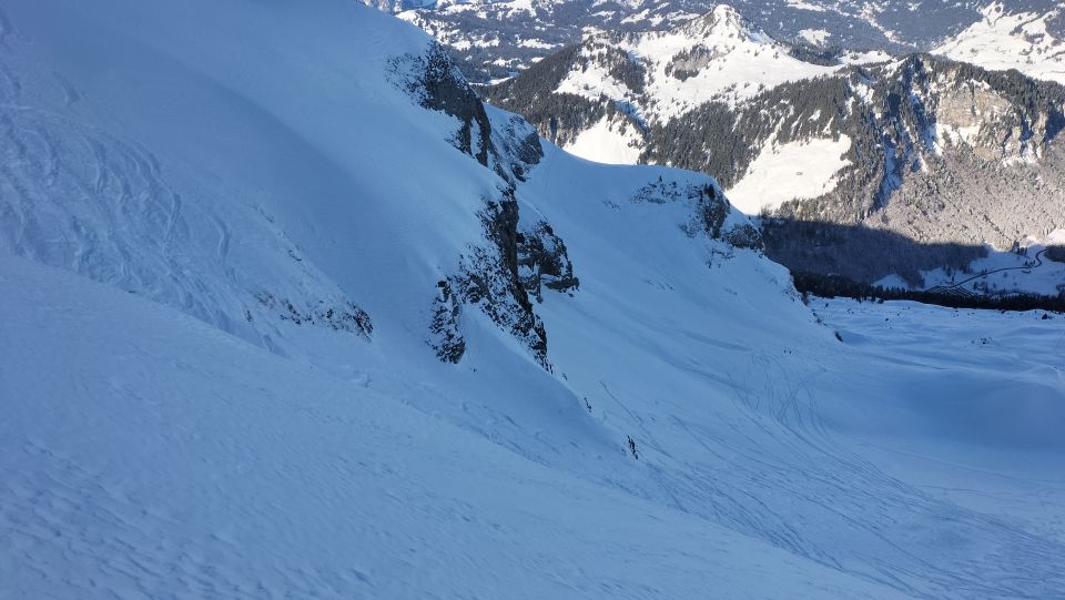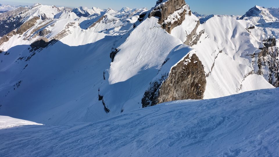 Start der Tour am 9.15 Uhr bei der Weglosen, dasWetter heute perfekt, mit - 10 Grad kalt, unten noch eher wenig Schnee aber dank der Piste auch gut, schon bald hatte es viel Schnee mit super Verhältnissen, im Gipfelbereich schon ziemlich verfahren, aber weiter unten noch viel Platz für neue Spuren.