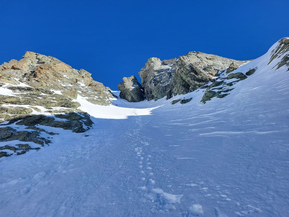 Ab Gipfel via Südcouloir mit Ski und retour via Aufstiegslinie. Oben sosolala, unten Traumpulver vom Feinsten. Absoluter Traumtag....:-)
