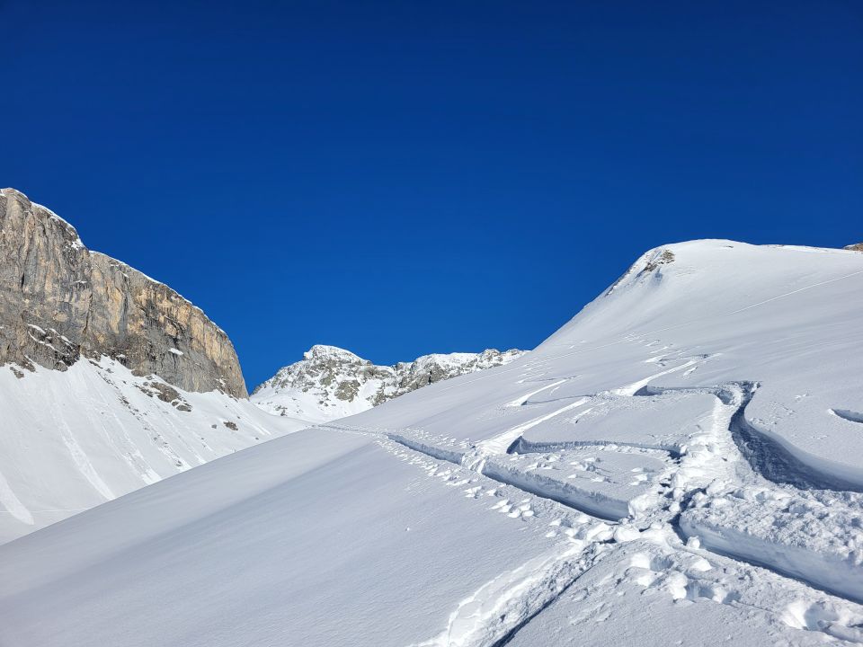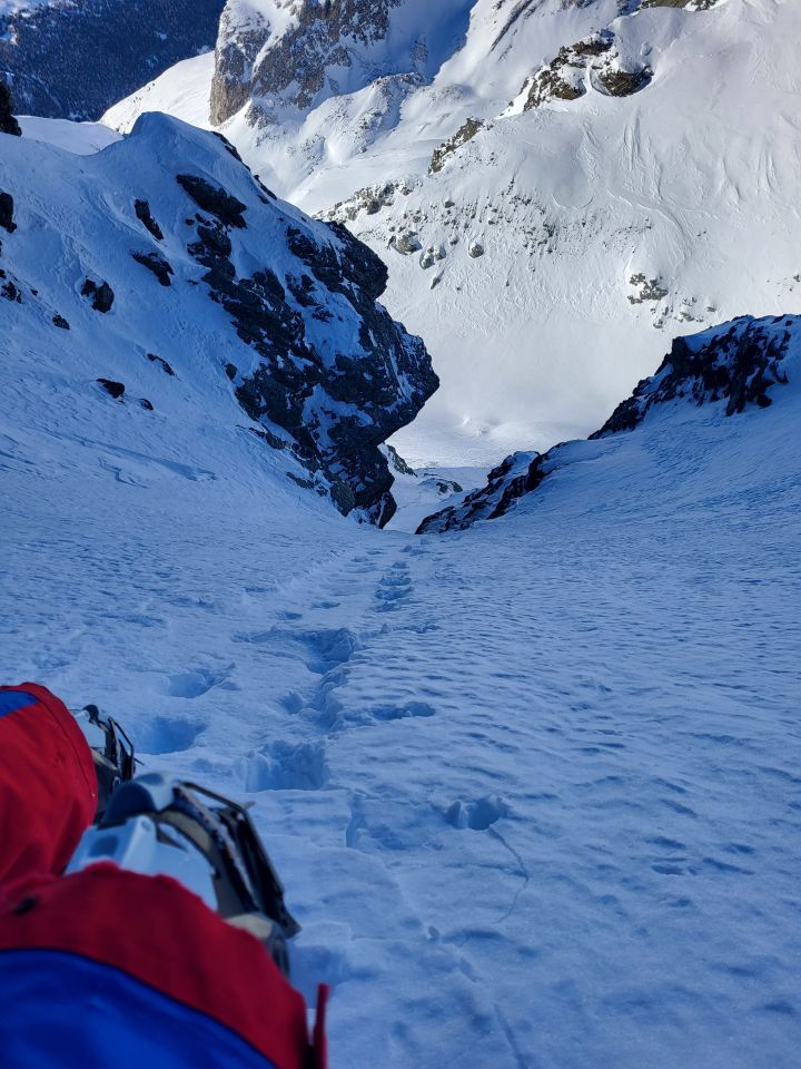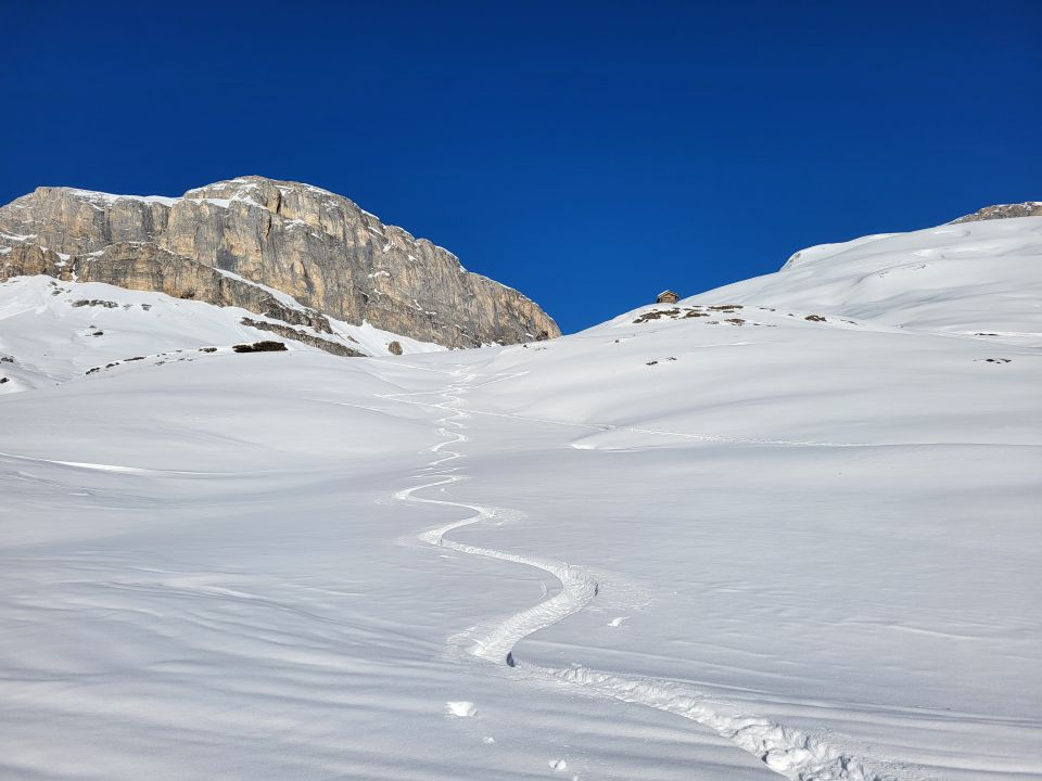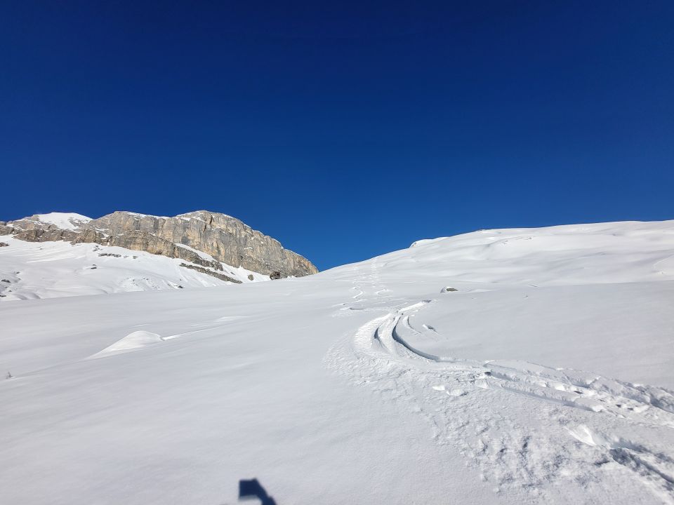 Kalter Start am PP vor Pürt. Ab Start neu eingespurt, unten toller Pulver, oben alles, von pickerhart über windgepresst, gedeckelt bis angesulzt. Beide Couloir gut begehbar, wenn auch streng zum spuren. Südcouloir ab Mitte auf Ski gewechselt, aber war auch nicht ringer...Am Gipfel warm und windstill und phantastische Weitsicht rundum.