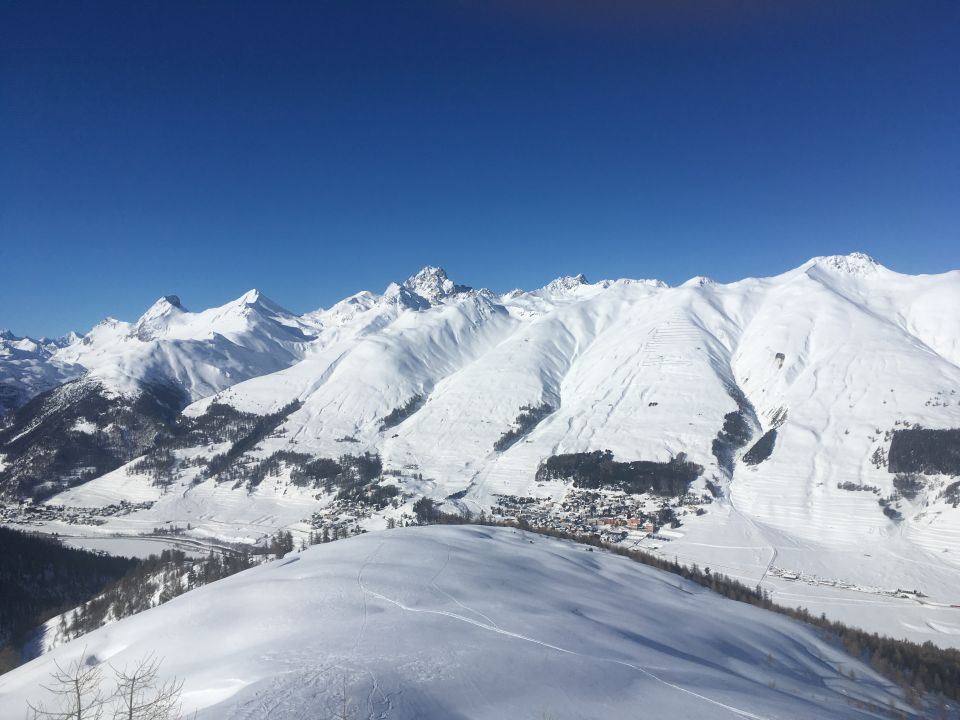 Frostige Rundtour -25 Grad, zum Felsblock P. 2337 und Abfahrt zur Alp Arpiglia. Start Zuoz Resgia 9 Uhr, minus 25 Grad, windstill. Wir sind gemütlich das Alpsträsschen hoch bis Punkt 2939. Margrit mit Schneeschuhe weiter auf Alpsträsschen zur Alp Arpiglia. Ich bin auf einer leider steilen Spur die Waldschneise hoch und weiter das fast flache Stück bis unter den Punkt 2337. Jetzt steil hoch mit vier Spitzkehren zum kleinen Felsblock. Hier kurze Pause und weiter südwestwärts in fast unverspurtem Gelände , 30 bis 35 Grad steil Abfahrt zur Alp Arpiglia. Toller Schnee, perfekte Abfahrt! Weiter auf Alpsträsschen nach Zuoz. Die Waldschneisen sind alle verfahren.