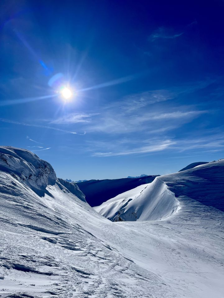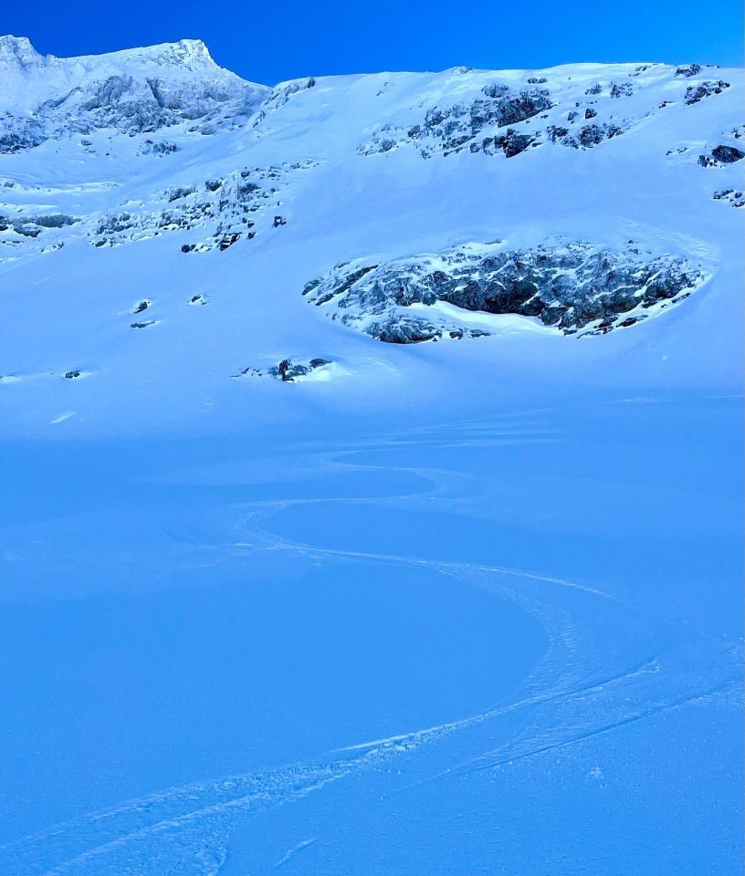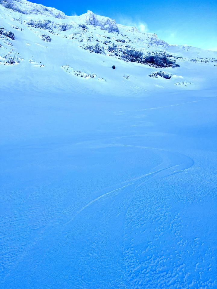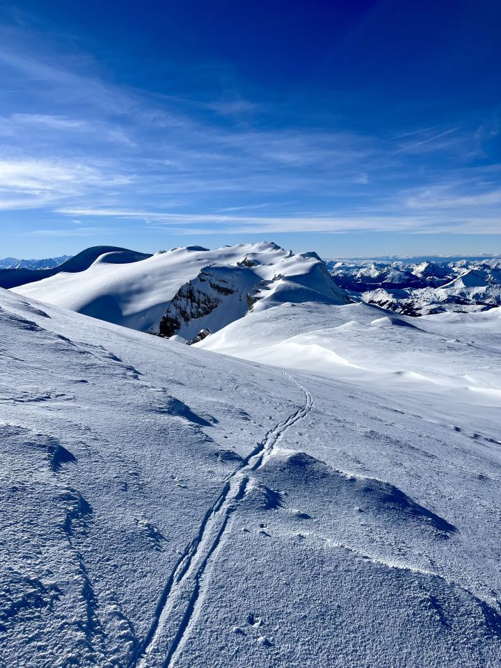 Auf einer griffigen, harten Unterlage hat es ca. 3-7 cm frischen Pulverschnee. Im Aufstieg sind Harscheisen hilfreich. Beim Übergang zum Frühstückplatz habe ich eine gute Spur freigeschaufelt. Vermutlich wird der Wind über Nacht meine Arbeit Zunichte machen. Nach dem Frühstückplatz ist der Aufstieg recht angenehm mit einem Pulverschümli. Auf dem Gipfel hatte es mässigen bis starken Wind. Top Fernsicht und nicht so kalt. Die Abfahrt war traumhaft schön, mit Pulver auf griffigem Schnee. War ganz alleine auf der Tour gewesen. Am Nachmittag kommen Nasschneelawinen auf der Ammertenspitzseite runter.