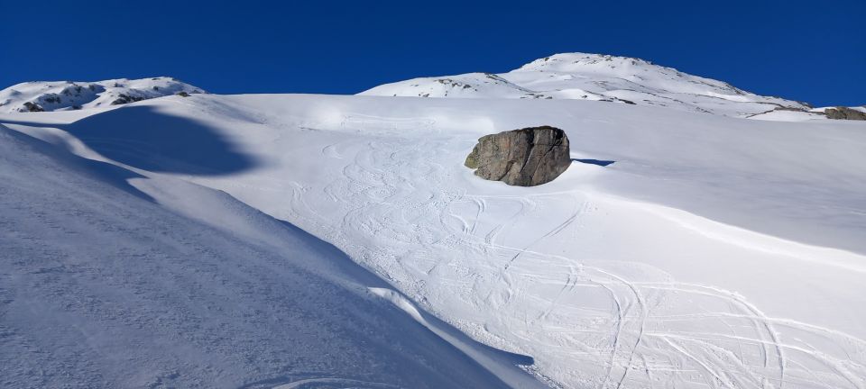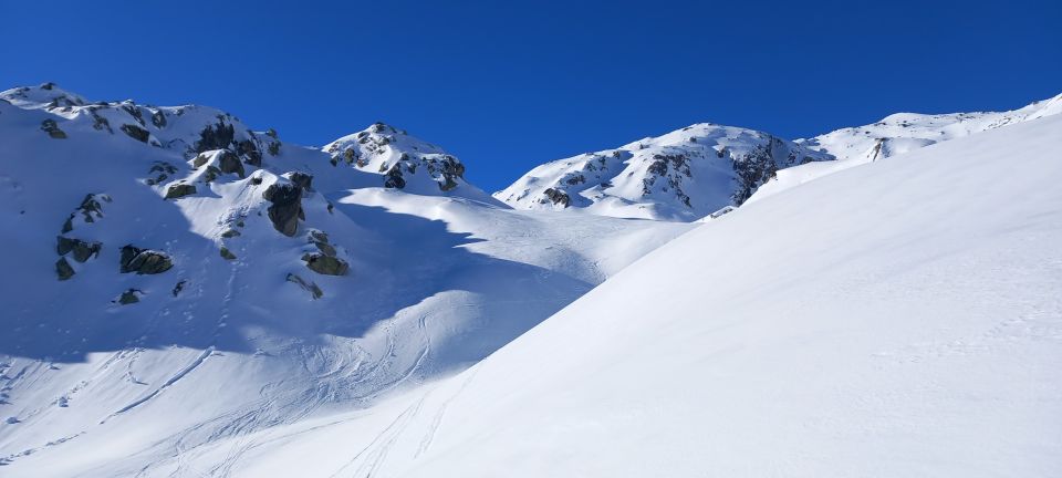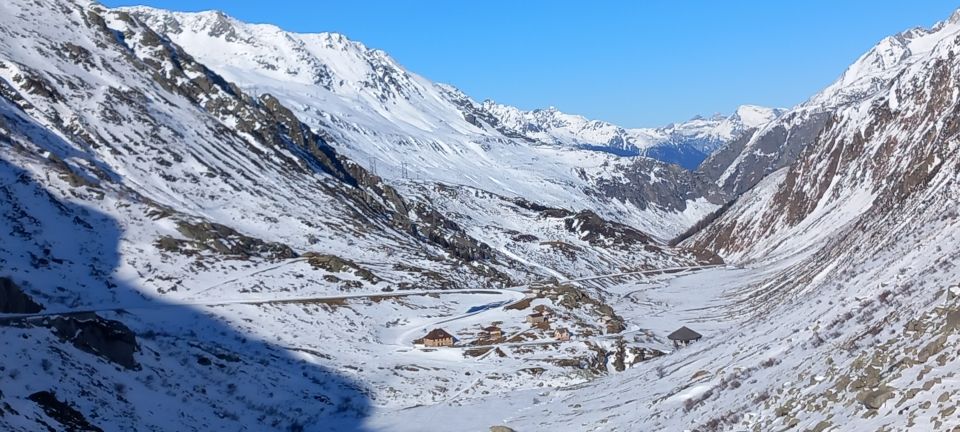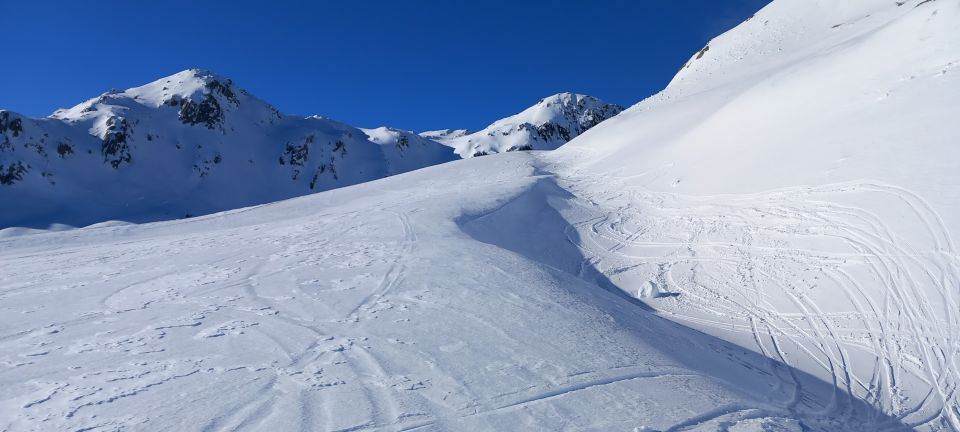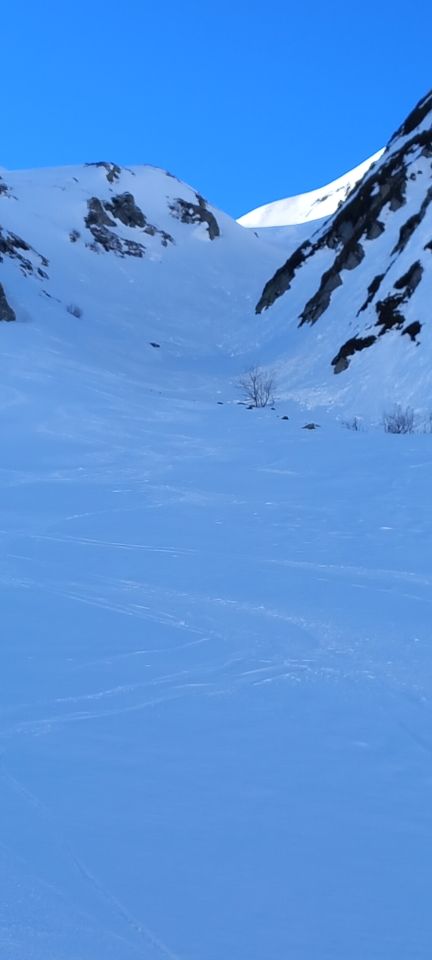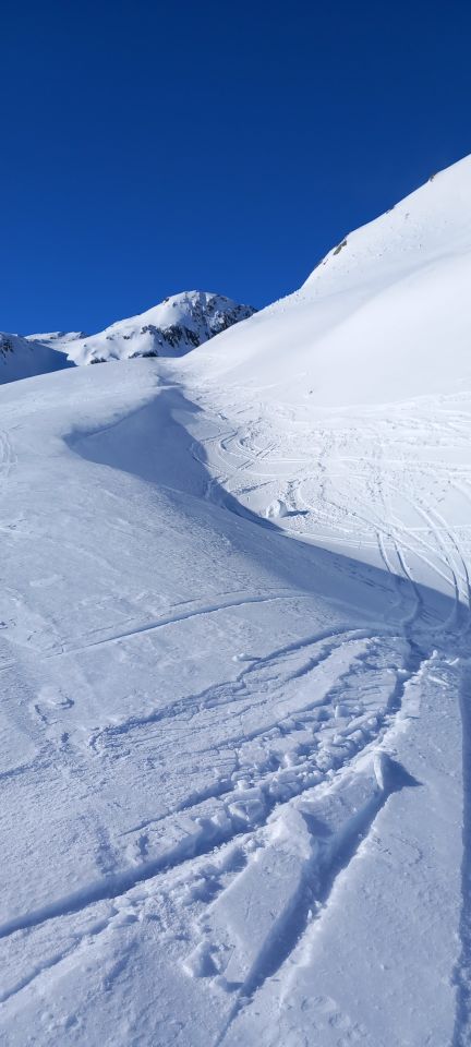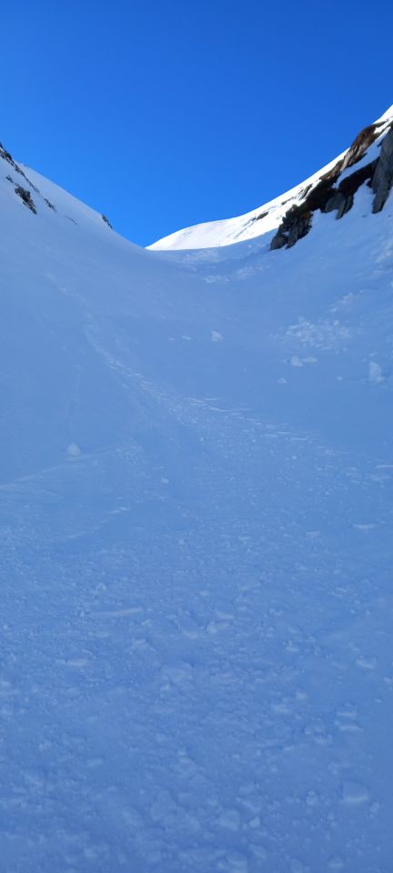 Abfahrt bis in den halben Gipfelhang und nach Süden über den Grat zum Gotthardpass runter. Sehr schöne Rinnenfolge. Firn mit eingewehtem Schümli drauf, tragender Winddeckel waren die heutige Beschaffenheit unter den Ski. Genial zu fahren. Es muss nicht immer Powder sein -;). Abgefahren bin ich ganz allein auf weiter Flur. Eine geführte Gruppe mit Bergführer ist vor mir runter. Einziger Wermutstropfen war die von einer grossen Schneeraupe ramponierte und gefrorene Passstrasse zurück nach Hospental. Niguet für die Stossdämpfer. Für die geniale Abfahrt rückt sowas jedoch in den Hintergrund.