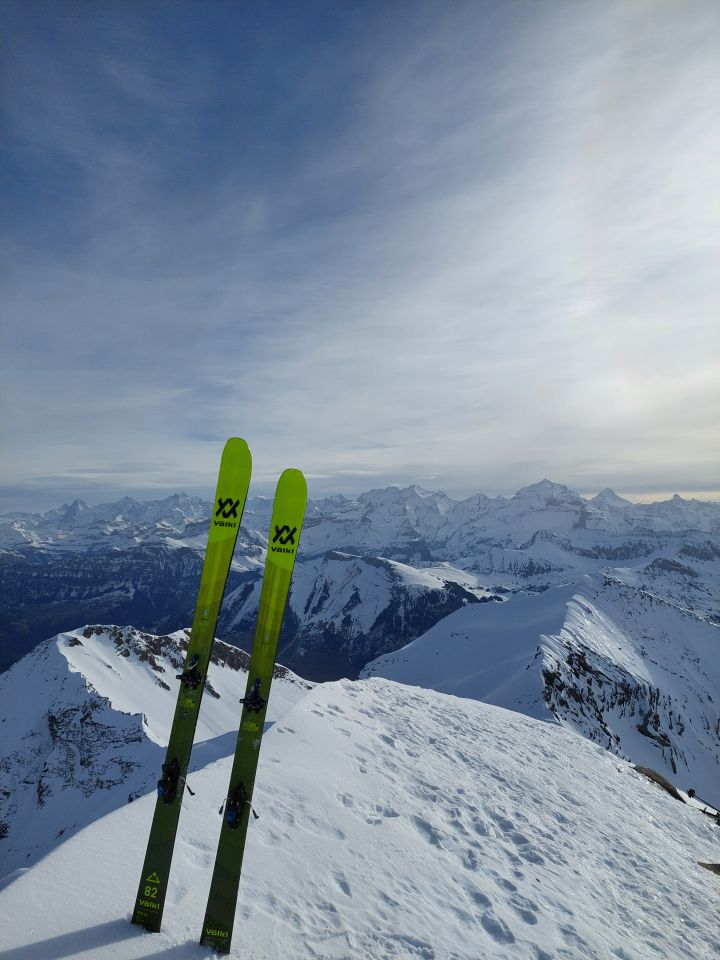 Aufstieg: Vom Hindere Fildrich links haltend den Wald hoch. Dort hat schon einige apere Stellen, darum habe ich die Skis bis oberhalb des Waldes getragen. Weiter bis zum Gipfel ist der Schnee hart gefroren. Für den Gipfelhang habe ich die Harscheisen montiert.