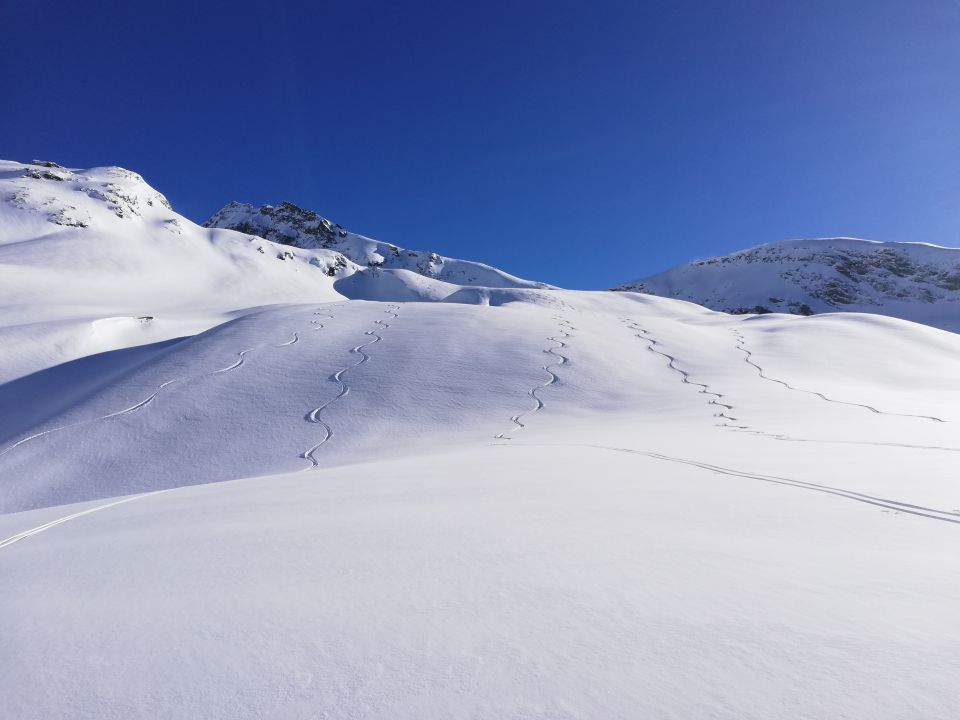 Ansonsten zu dem Tag: es herrschten hervorragende Tourenbedingungen. Wenig Menschen unterwegs traumhafter Pulver. Genuss pur.