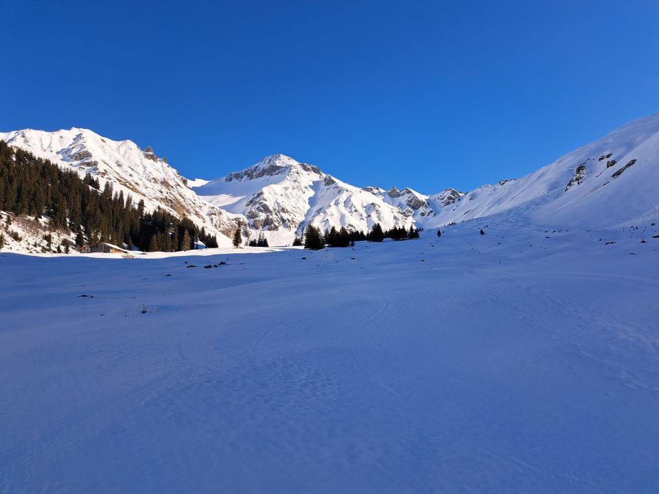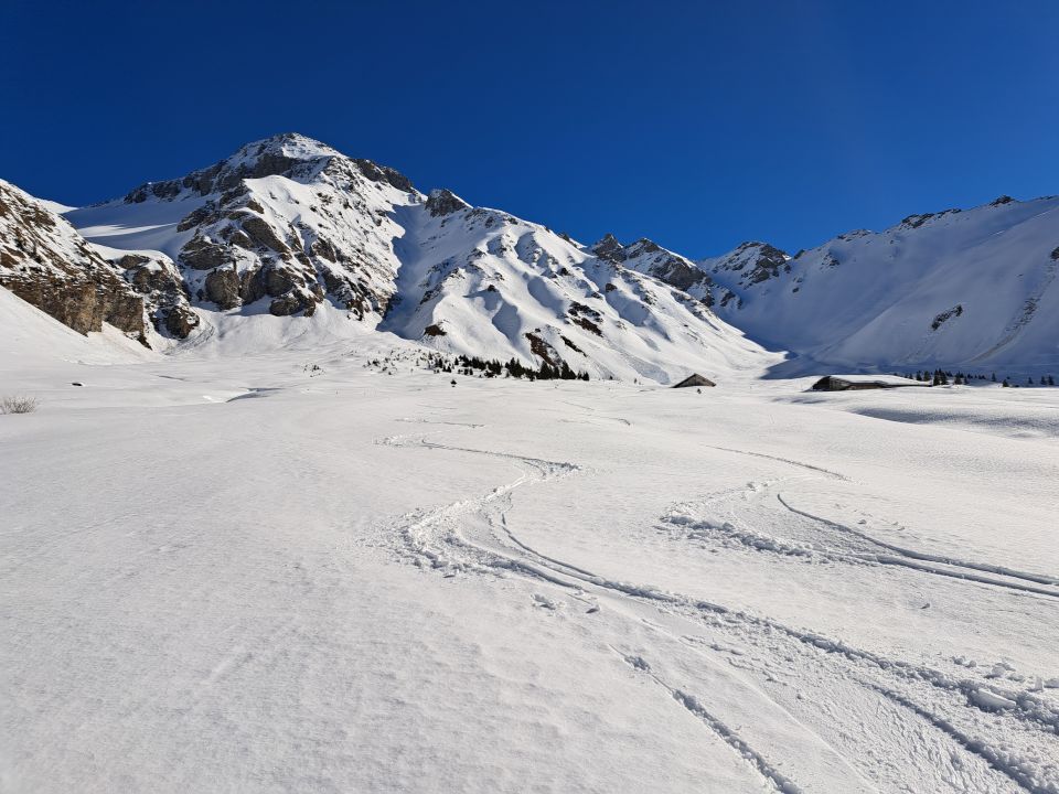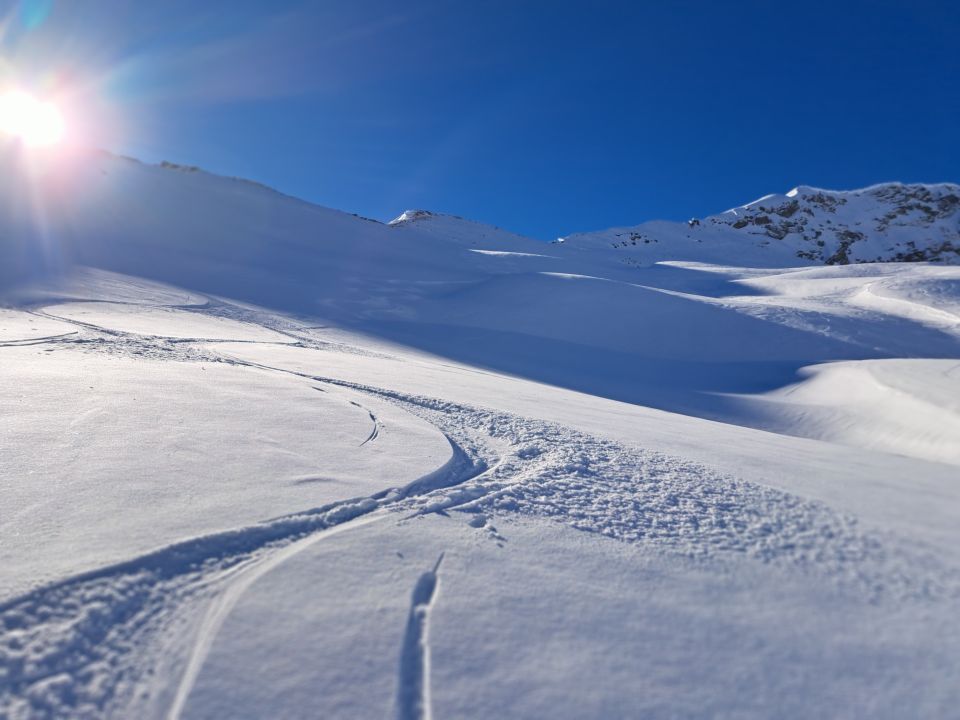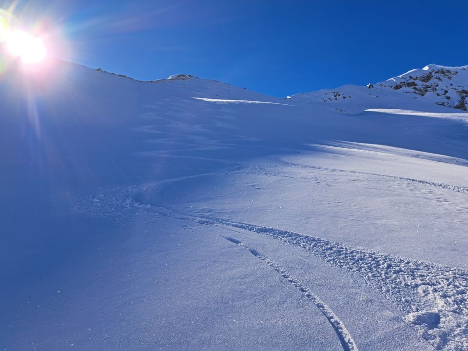 In der Abfahrt unterhalb Schlüsselstelle ca.100hm sehr vorsichtig abfahren da pulverschnee und eisige stellen immer wechseln.