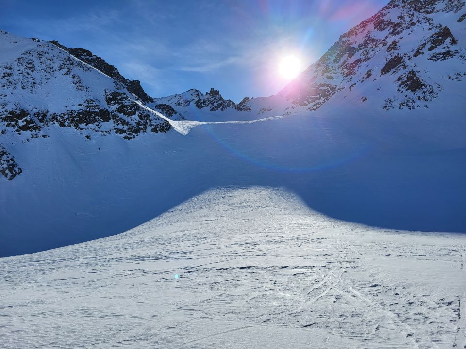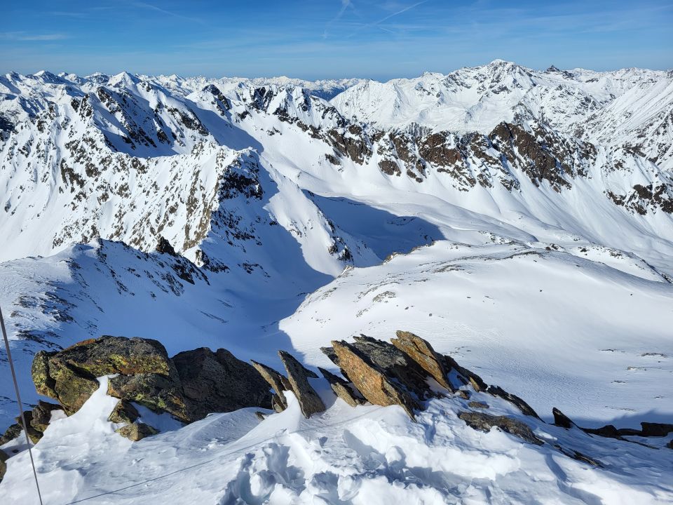 Am 4.2.24 Tour zum Schrankarkopf mit schöner Abfahrt. Bei der Abfahrt rechts halten und hoch bleiben, dann kommt man zu einem steilen Hang. Weiter unten nicht so prickelnd.