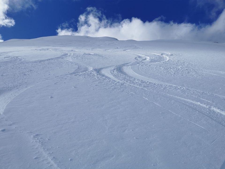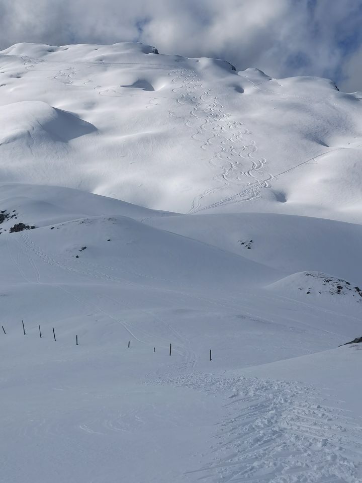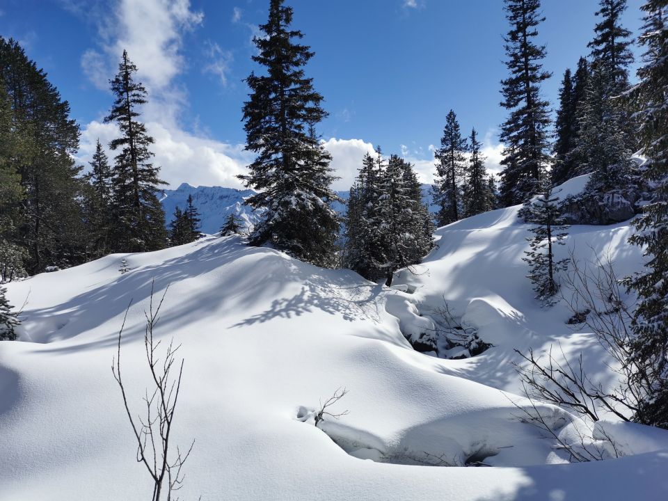 Erstaunlich gut, wenn auch erst ab Schlund durchgehend mit Schnee. Ob der Baumgrenze sehr gut mit viel Powder.