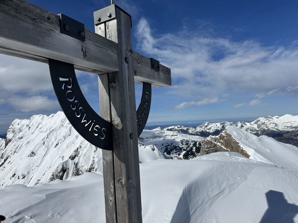 Wer den Skilift am Berghaus Malbun sieht, denkt einen Moment, er hätte heute besser das Fahrrad genommen. Schon oberhalb des Waldes ist die Schneedecke aber durchgehend, es gibt ein bisschen frischen Pulver, die Fellabfahrt vom Isisizgrat ist kommod und der Aufstieg am Gipfelhang auf perfekter Spur ebenso vergnüglich wie die Abfahrt. Zusammen mit dem blauen Himmel, den es heute sicher nicht überall in den Bergen gibt, reicht das für ein ausgezeichnet.
