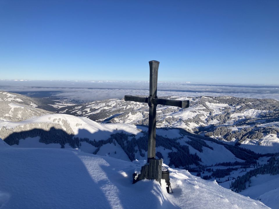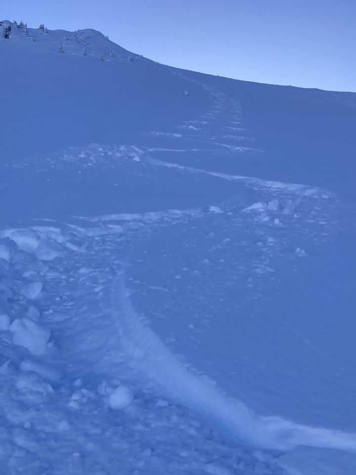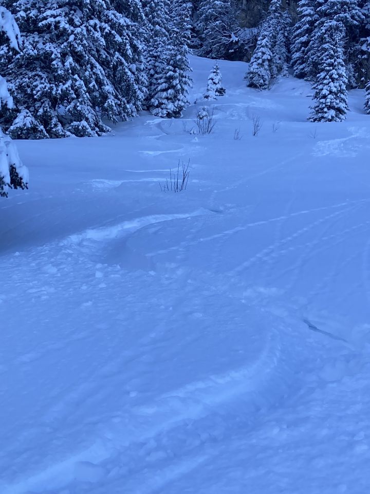 Ab Hengst fahrbar - Unterlage ab 1500m, darüber 30cm leicht gepresster Puder. Über 1900m schon Windeinfluss aber nirgends kritisch. Vom Skidepot bis Gipfel teils hüfttief gespurt, dafür Firstline vom Feinsten. Zum Einwärmen vorher noch Alpiglenmäre gemacht - auch top!