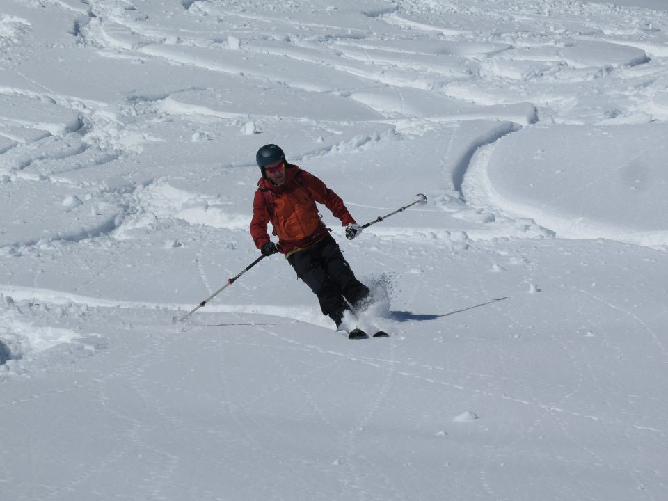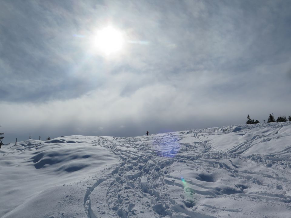 Gipfelhang - 40 cm Neuschnee der schon recht verfahren ist. Bis Silwänge je nach expo Pulver oder sehr schwerer feuchter Schnee mit oder ohne Kruste.