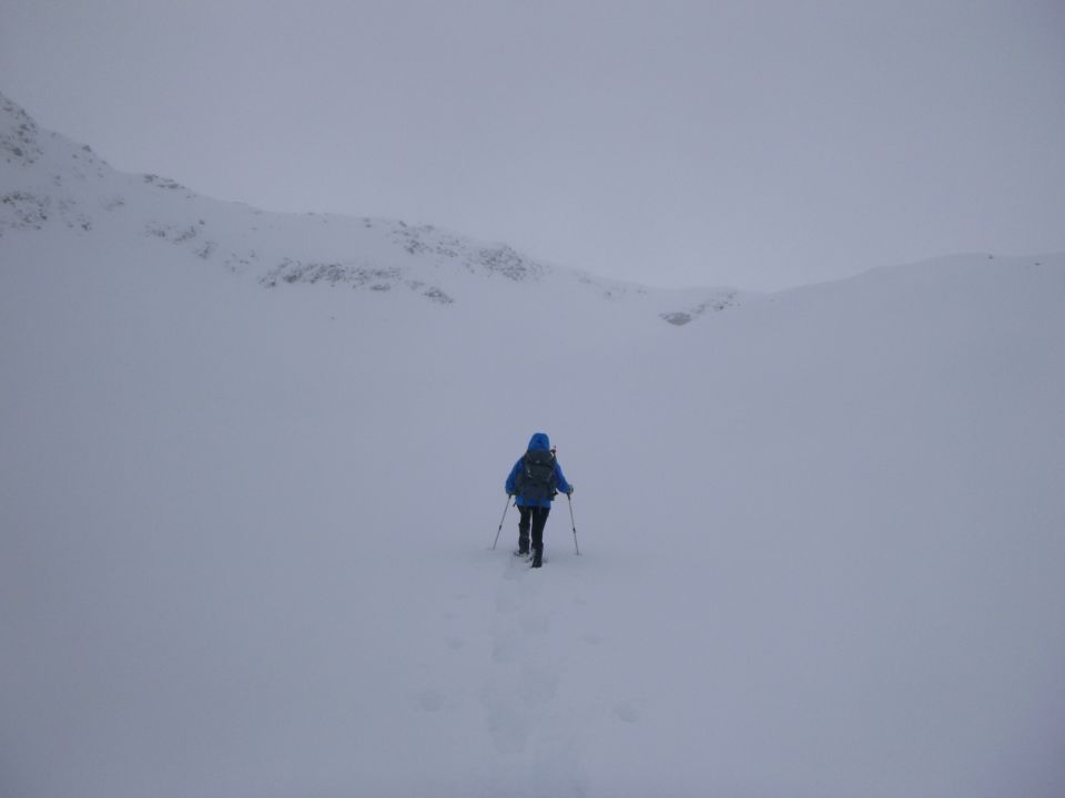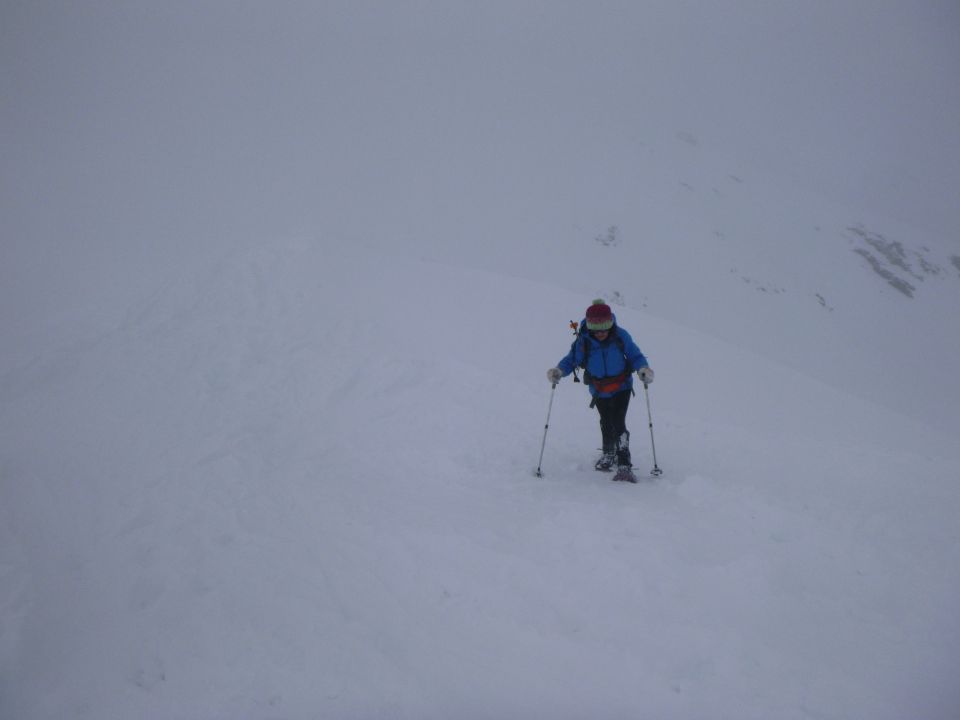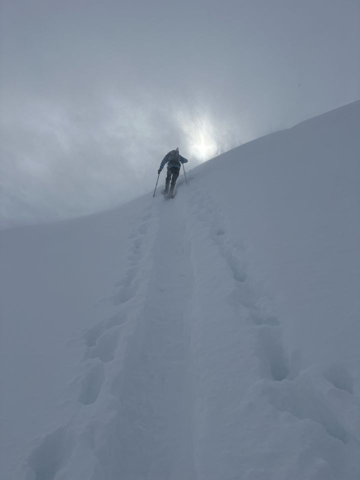 Bis zum Sattel mussten wir mühsam und zeitfressend hinauf spuren.