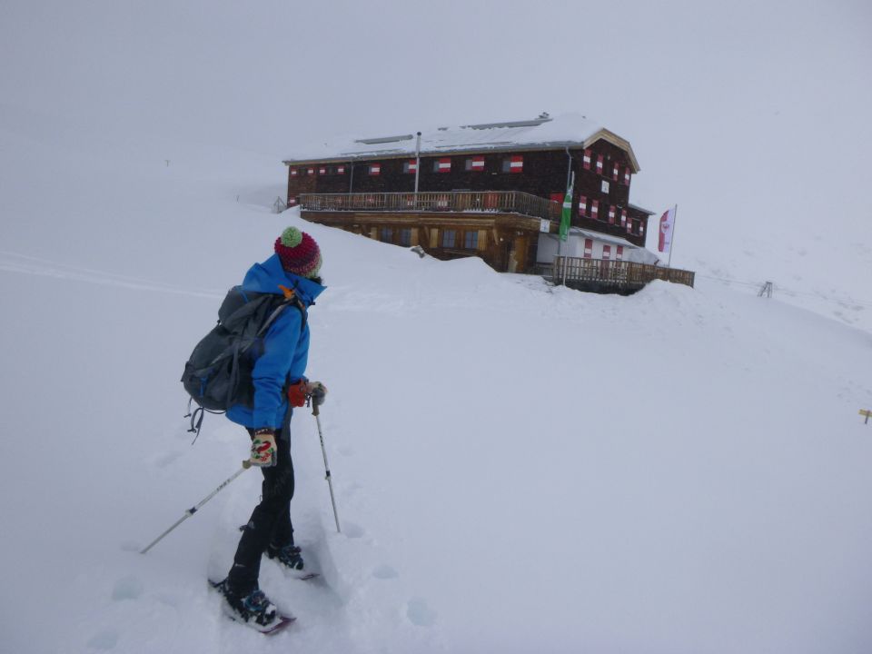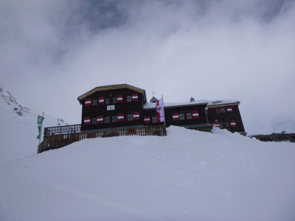 Die Rofenstraße war geräumt von Vent bis Rofenhöfe. Ab der Schranke dann auf einer Schneemobil-Spur bis zur Rofenalm. Von dort durch 30 cm tiefen Pulverschnee. Eine Skispur vom Vortag bis zur Hütte war vorhanden von den Helfern, welche die Vernagthütte vom vielen Schnee freifrästen für den Start in die Wintersaison.