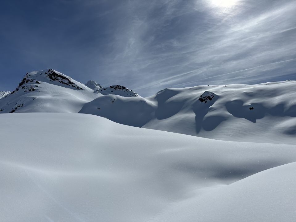 Diese Rundtour - an einem Tag wie heute - zählt zum Schönsten, was man sich nur wünschen kann. Abwechslungsreicher Aufstieg auf perfekter Spur über die Winterlücke, eine traumhafte Landschaft, vor allem, aber nicht nur rund um die Jöriseen, XXL Abfahrten, der Gipfel über sicheren Stapfschnee gut erreichbar, mit Hammer Panorama von Alpstein bis Bernina … auf der Ostseite feinster Pulver, die Abfahrt zu den Seen fünf Sterne, auf der Westseite ab der Jöriflüelafurgga dann auf gutmütigem Sulz bis runter zur Straße. So war das heute. Zum Niederknien!