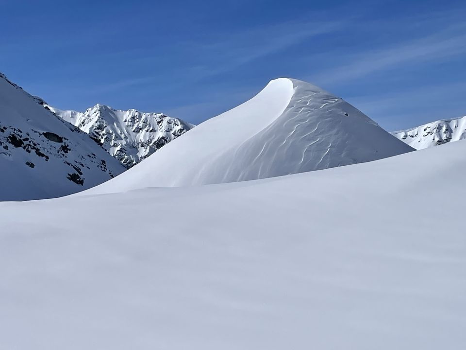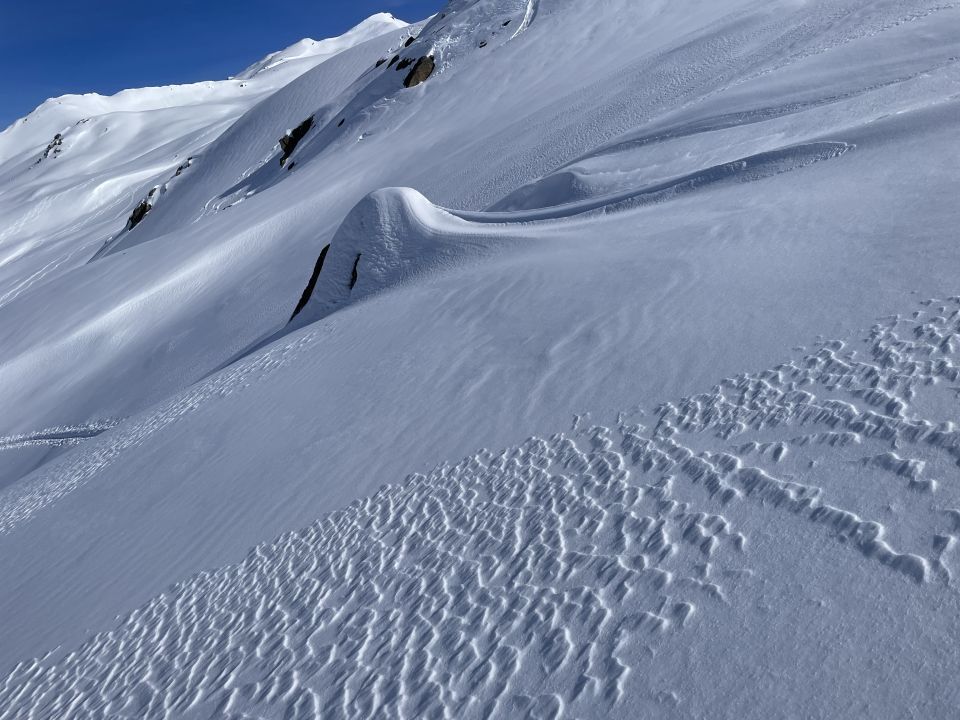 Wer noch nicht wusste, warum sie den Nickname Wäschchuchi trägt, dem hat sich das bei den heutigen Temperaturen erschlossen. Trotzdem keine Lawinenaktivitäten mehr beobachtet, war alles schon am Vortag runtergekommen.