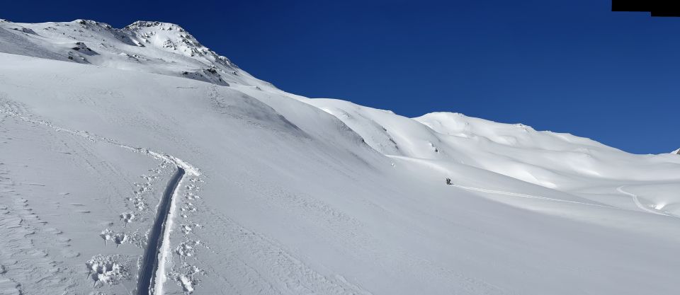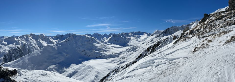 Der Rossbodenstock im Anschluss an den Pazola ist eine schöne Kombi, auch wenn der Übergang zumindest an einer Stelle (nach der Martschallücke) etwas hakelig ist (ich habe die Ski kurz abgenommen). An den schönen Verhältnissen heute hat nur der kräftige Wind etwas für Abstriche gesorgt. Den wunderschönen Pulver im Aufstieg zum Pazolastock gab es bei der Abfahrt nicht, der Wind hatte schon einiges verfrachtet. Am Gipfelhang deshalb bockelhart, weiter unten dann aber mit ein bisschen Triebschnee richtig richtig schön zu fahren. Abfahrt bis nach Andermatt Bahnhof auf der Passstraße sehr kommod (ich bin bei Schöni 1888 m oberhalb Nätschen zur Straße gequert, man hätte aber auch noch weiter im Gelände abfahren können) - was will man mehr!