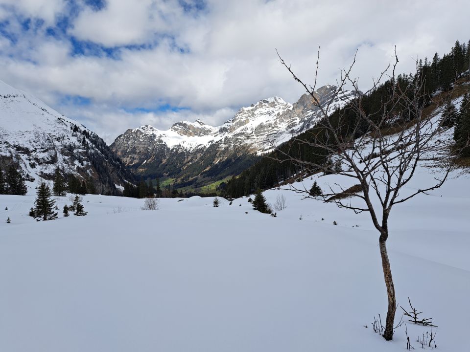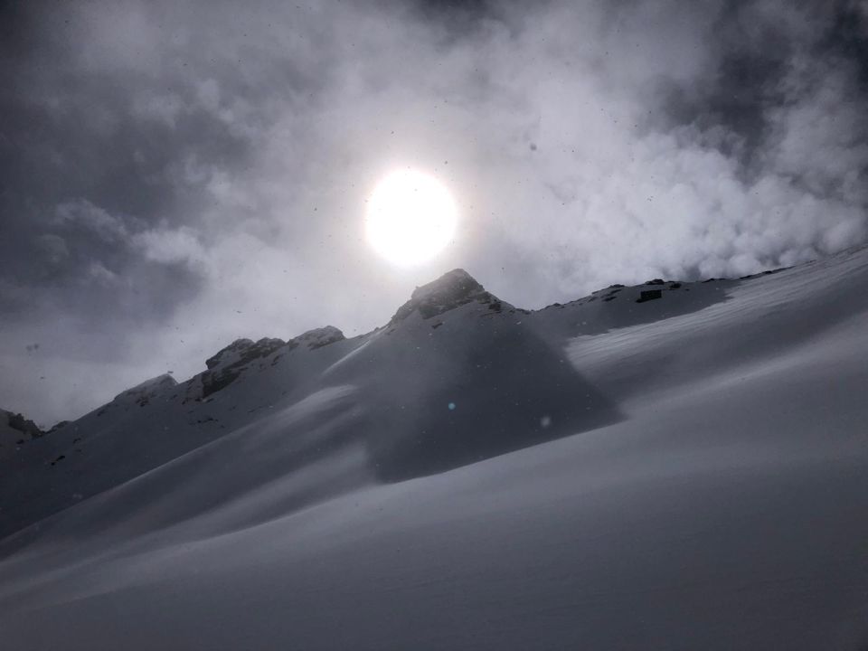 Am Morgen beim Start noch leichter Schneefall,zum teil Nebel aber immer gute voraussicht bis 2597m der Schlüsselstelle.