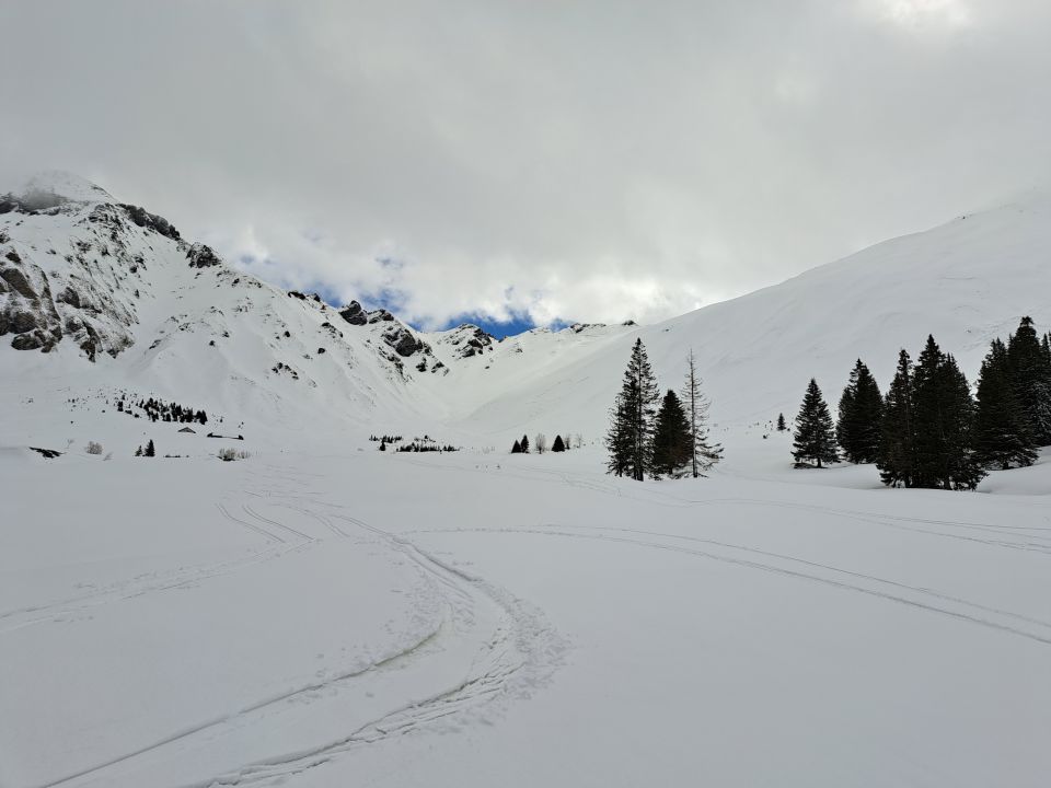 Abfahrt mit 10-20cm Pulverschnee super