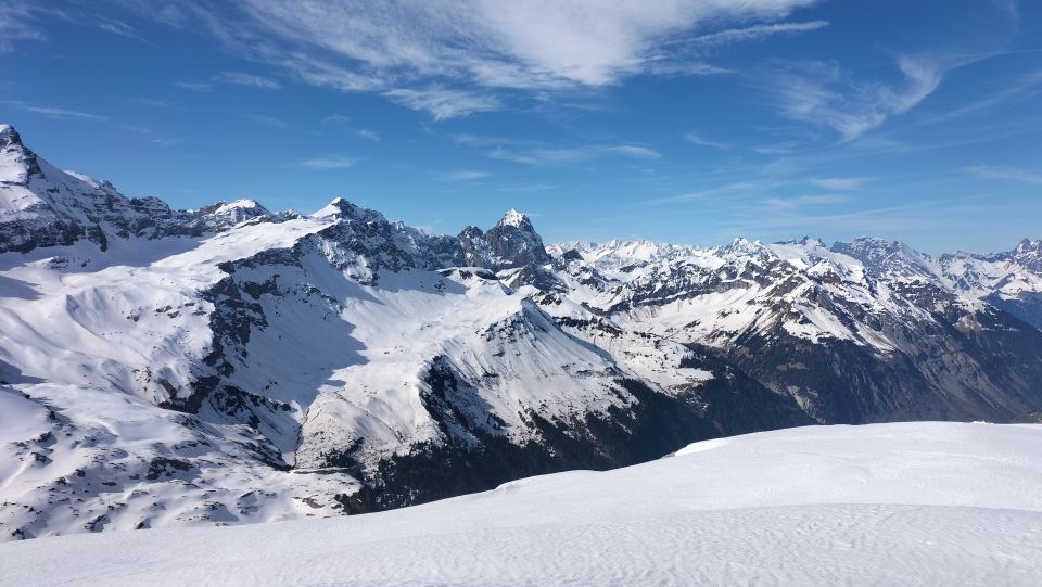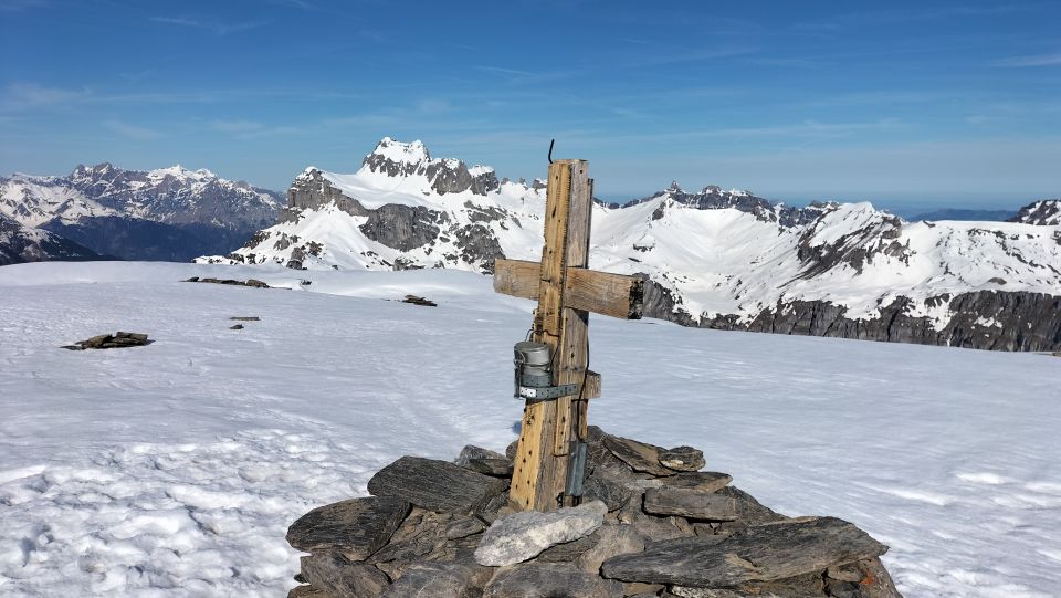 Start der Tour am 7.15 Uhr bei der Ruosalp, das Wetter schön , die Ski konnten sofort montiert werden, ab 2000 Meter tragende Schneedecke, beim Gipfel war es leicht windig , die Abfahrt war ging recht gut, oben Hart unten Nassschnee.