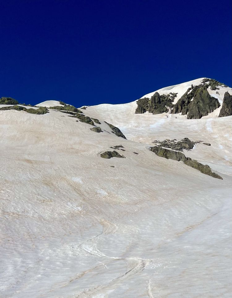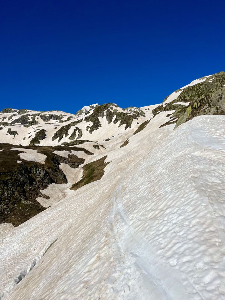 Schöne Sommerskitour mit guten Verhältnissen. Es hat noch viel Schnee auf der Geimsel. Man kann direkt beim Parkplatz die Skier anschnallen. Bin um 7.30 Uhr bei 7 Grad gestartet. Etwas früher wäre nicht schlecht. Aufstieg noch relativ hart. Habe das warme und windstille Gipfelambiente genossen. Die Abfahrt mit dem feinen Sülzli war der Traum. Der Saharastaub hat im unteren Bereich etwas gebremst. War um 9.00 Uhr zurück auf dem Parkplatz. Später wird es sehr sulzig.