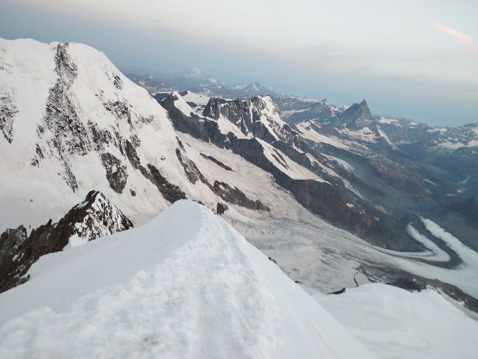 Bombastische Verhältnisse! Gletscher mit perfekter Schneeauflage, somit fast alle Spalten schön abgedeckt. Wir sind von Zermatt aus gestartet, und haben den Gipfel nach 2 Biwaks um 7:00 erreicht. Abseilen zum Silbersattel nicht sehr angenehm aber mit Geduld geht's. Wenn's dort Stau gibt wird allerdings ziemlich ungemütlich.. Im Anschluss noch einmal biwakiert, um am Tag 4 wieder nach Zermatt abzusteigen. Eine eindrückliche Reise mit spannender Fauna und Flora, vielen alpinen Ereignissen wie z.B. riesige Lawinenabgänge vom Liskamm oder wummende Gletscherspalten. Absolut phänomenal!