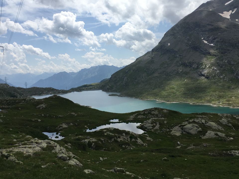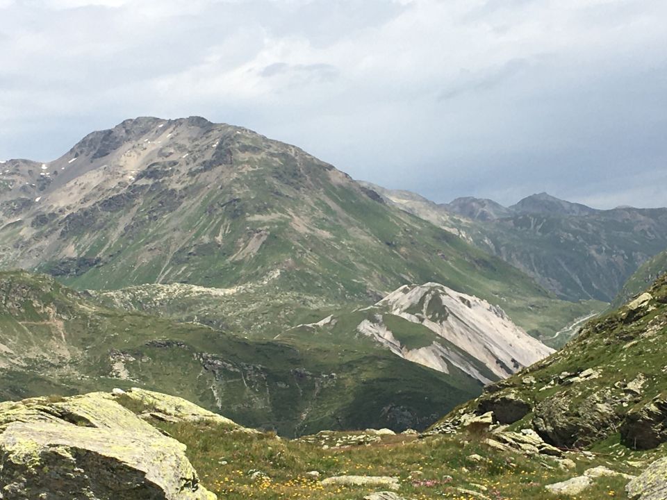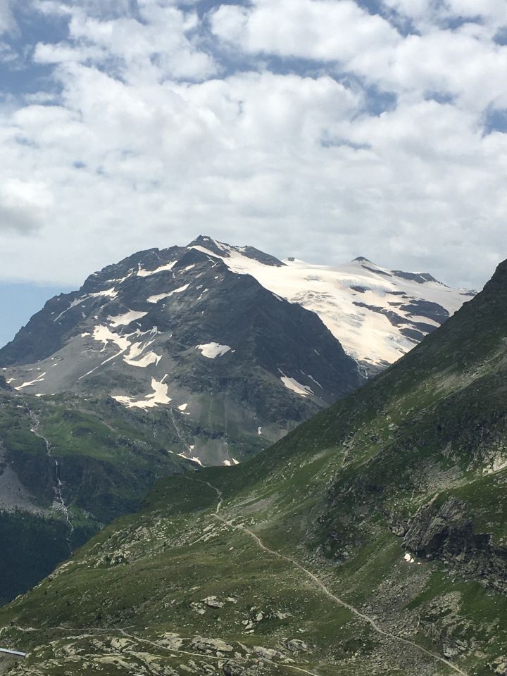 Alpine Grattour auf den markanten Aussichtsgipfel östlich des Lago Bianco, T4. Start Berninapasstrasse Punkt 2327 9.45 Uhr, 13 Grad, windstill, leicht bewölkt. Schöner Wanderweg bis zum Nordwestgrat, jetzt habe ich den Wanderweg verlassen und auf Grat, das erste felsige Hindernis in der Flanke umgangen und wieder hoch zum Grat geklettert, nun mehr oder weniger dem ausgesetzten Grat gefolgt bis zu einer Scharte und weiter zum Gipfel. Die Nordseite ist fast senkrecht und felsig, die Westflanke Gras und Schrofen, 35 bis 40 Grad steil. T4. Abstieg auf markiertem Wanderweg, T3+.