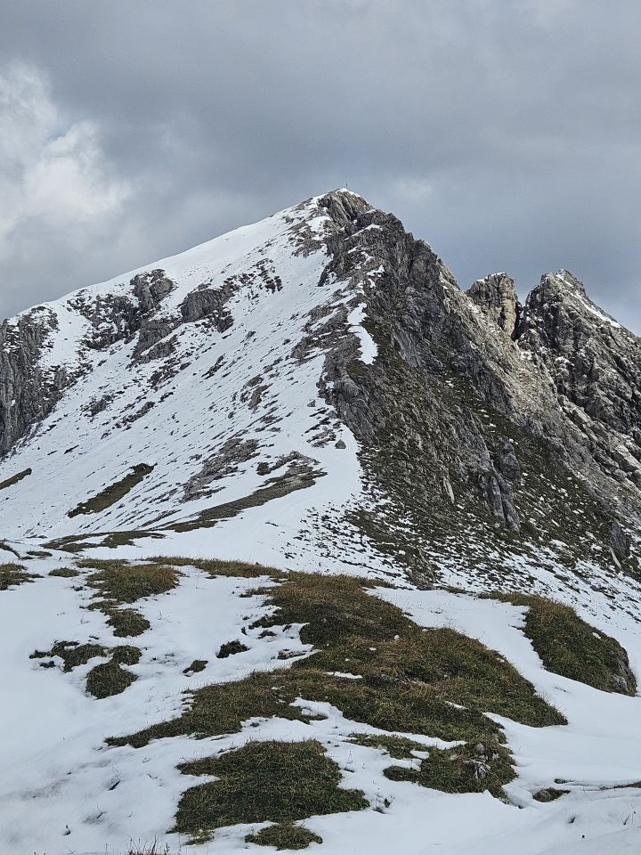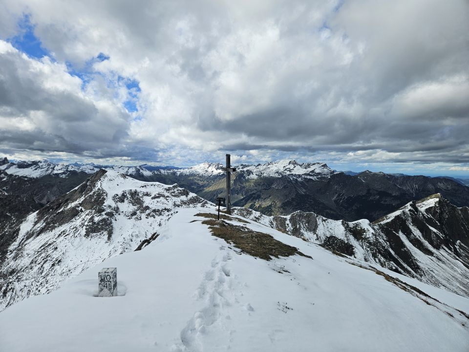 Reichlich Schnee, haben nicht den normalen Weg genommen sondern sind von der Lahnerscharte am Grat entlang zum Gipfel.